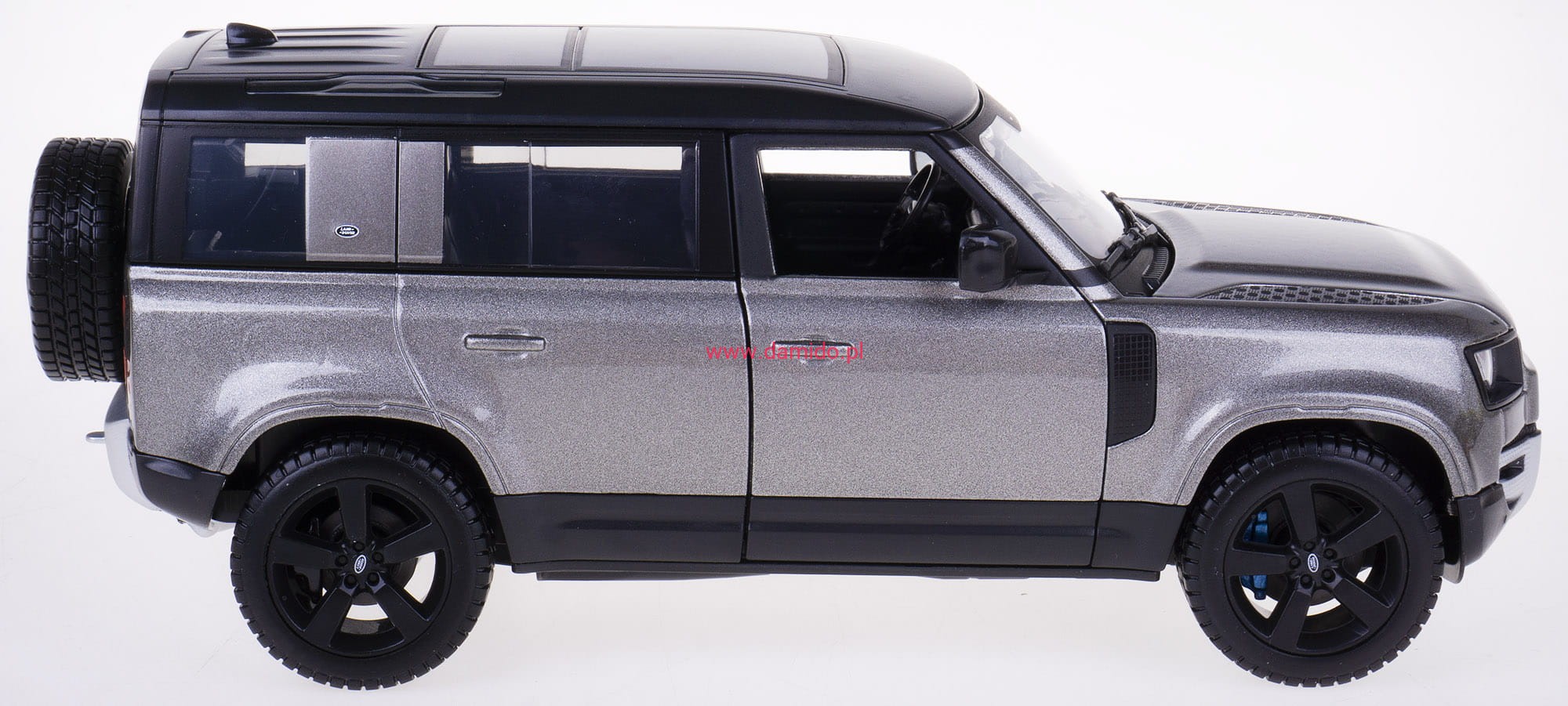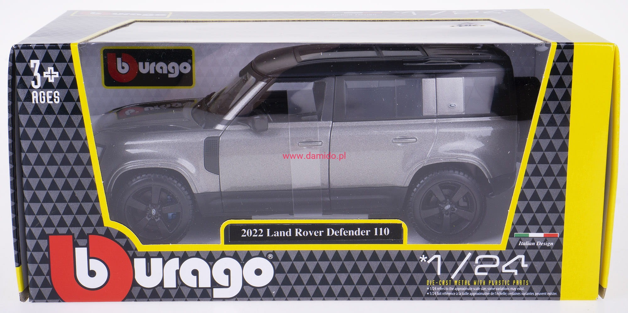 Model LAND ROVER DEFENDER 110 2022 wykonany został z metalu i plastiku na gumowych oponach w skali 1:24 firmy BBURAGO.
