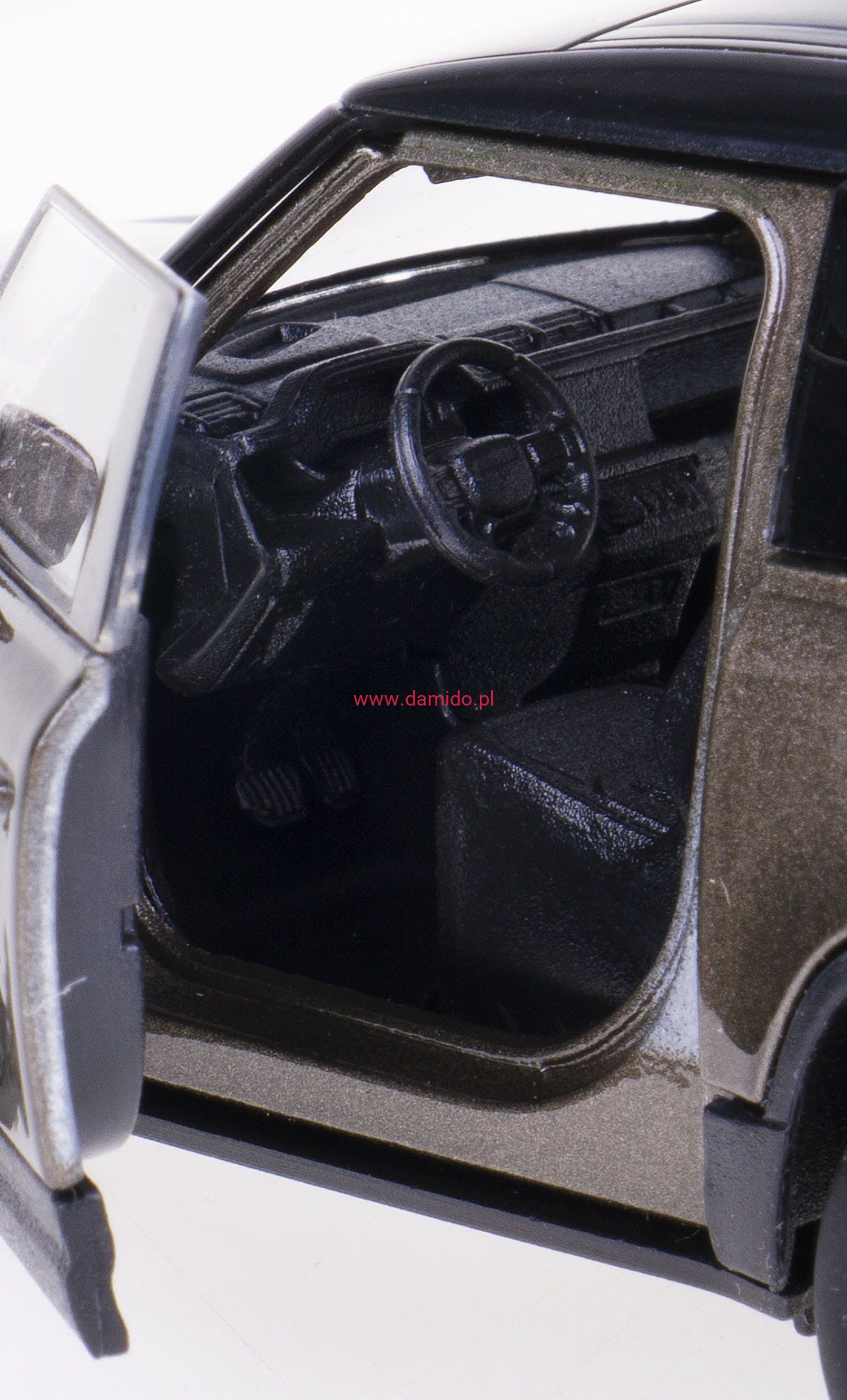 Model wykonany jest z metalu z dodatkiem plastiku. Posiada gumowe opony i otwierane drzwi.