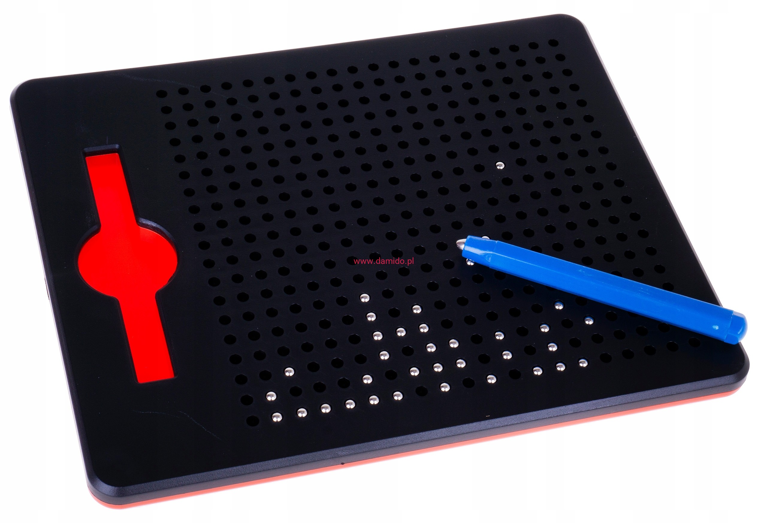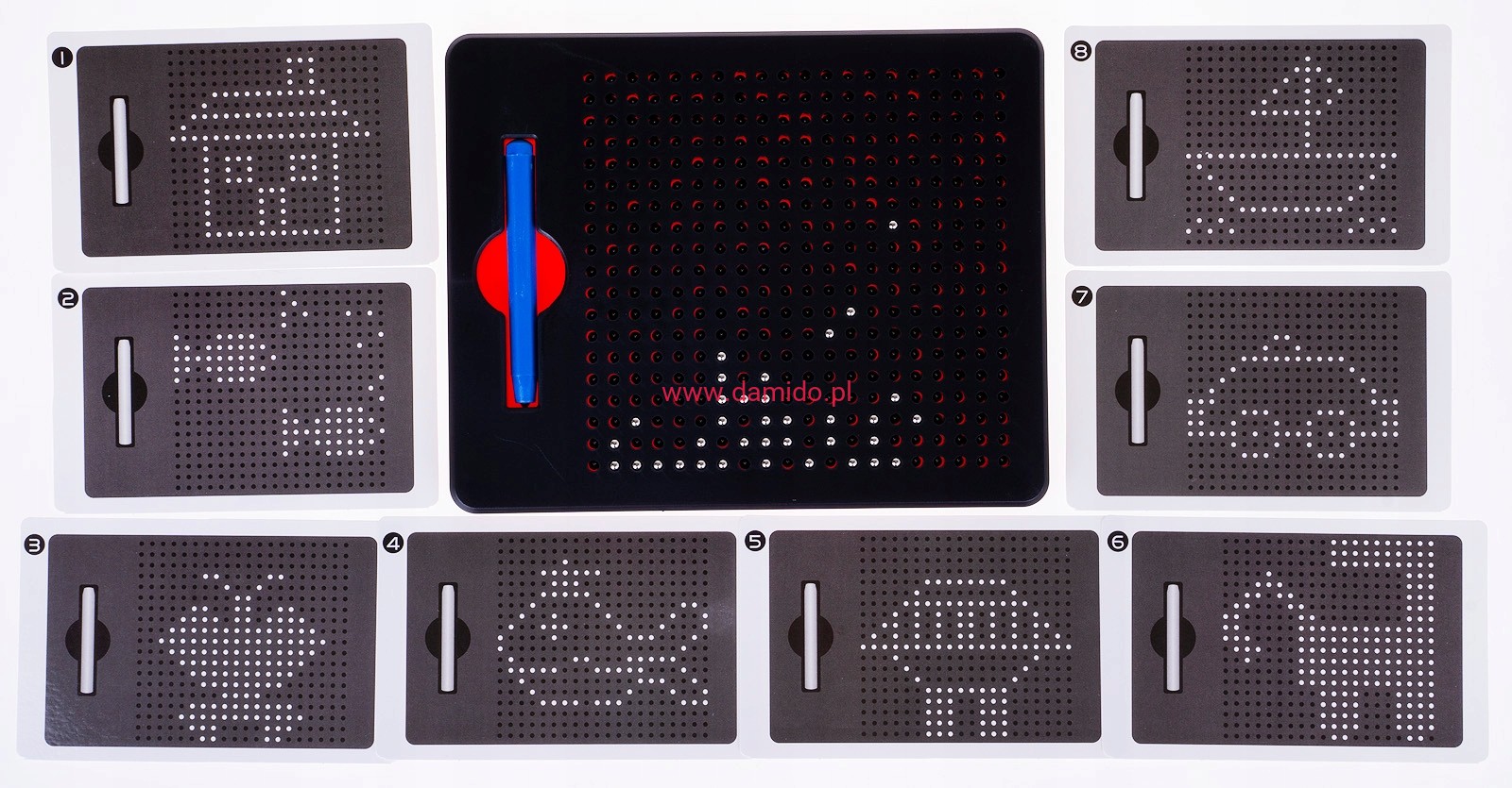 Tablica posiada aż 380 otworów, które wewnątrz mieszczą tyle samo metalowych kulek. Dzięki załączonemu rysikowi z magnesem, który przy dotknięciu rysika do tablicy powoduje, że kulki unoszą się do góry, mogą powstać, dzieła sztuki, różne napisy, samodzielne wzory lub obrazki według załączonych kart z wzorami.