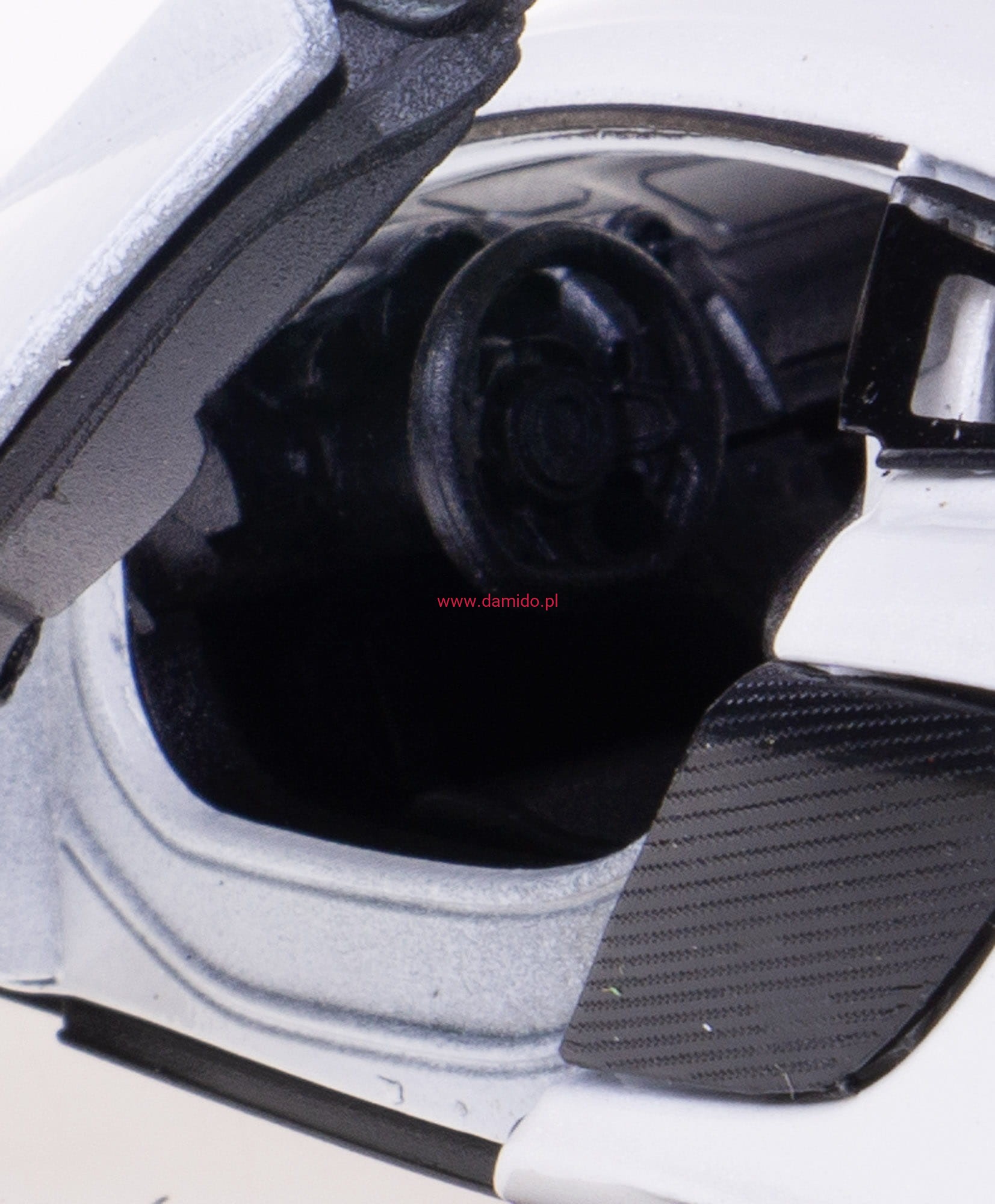 Model wykonany jest z metalu z dodatkiem plastiku. Posiada gumowe opony i otwierane drzwi.