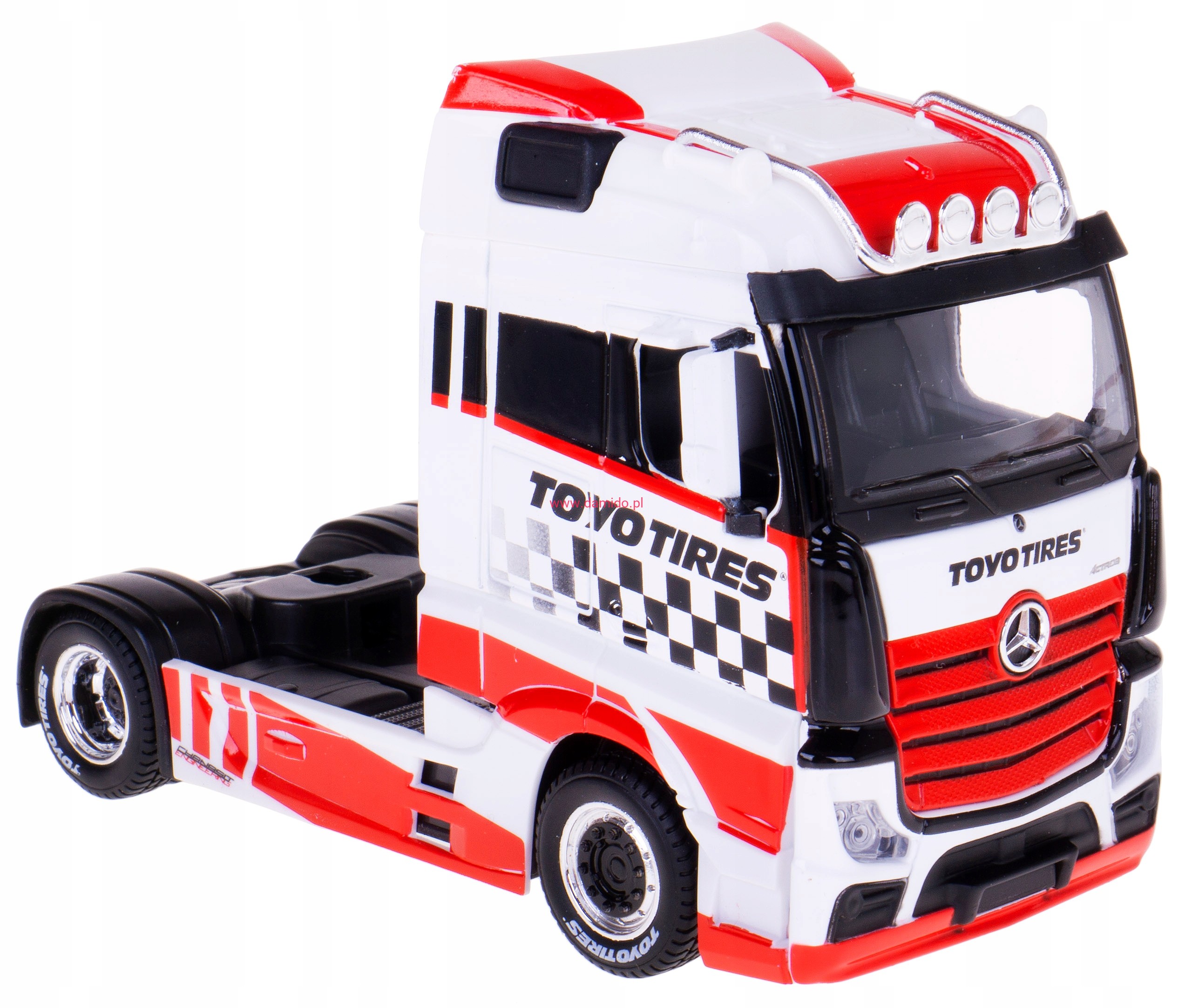 Model ciągnika Mercedes Actros wykonany jest w skali 1:43 firmy Bburago.