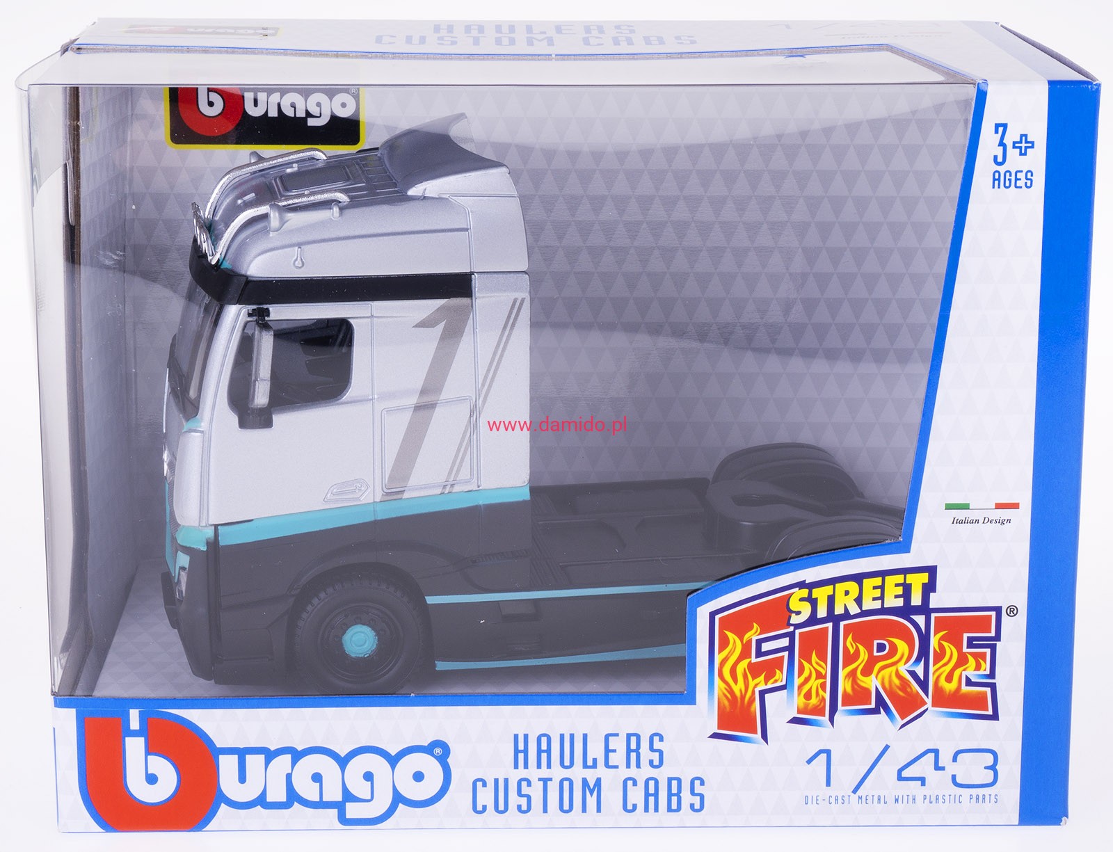 Model ciągnika Mercedes Actros wykonany jest w skali 1:43 firmy Bburago.