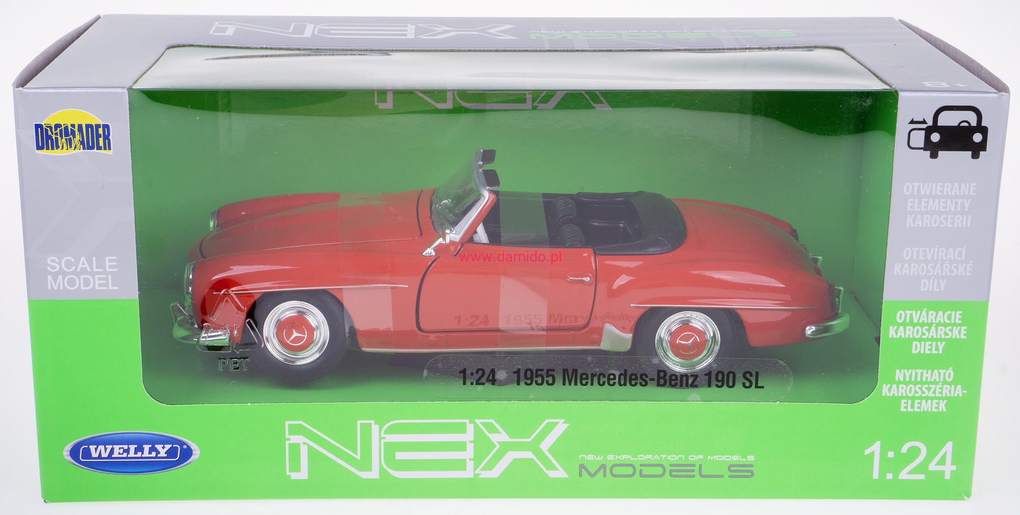Model MERCEDES-BENZ 190 SL 1955 wykonany jest w skali 1:24 firmy WELLY. Modele charakteryzują się znakomitą jakością i wiernością wykonania.