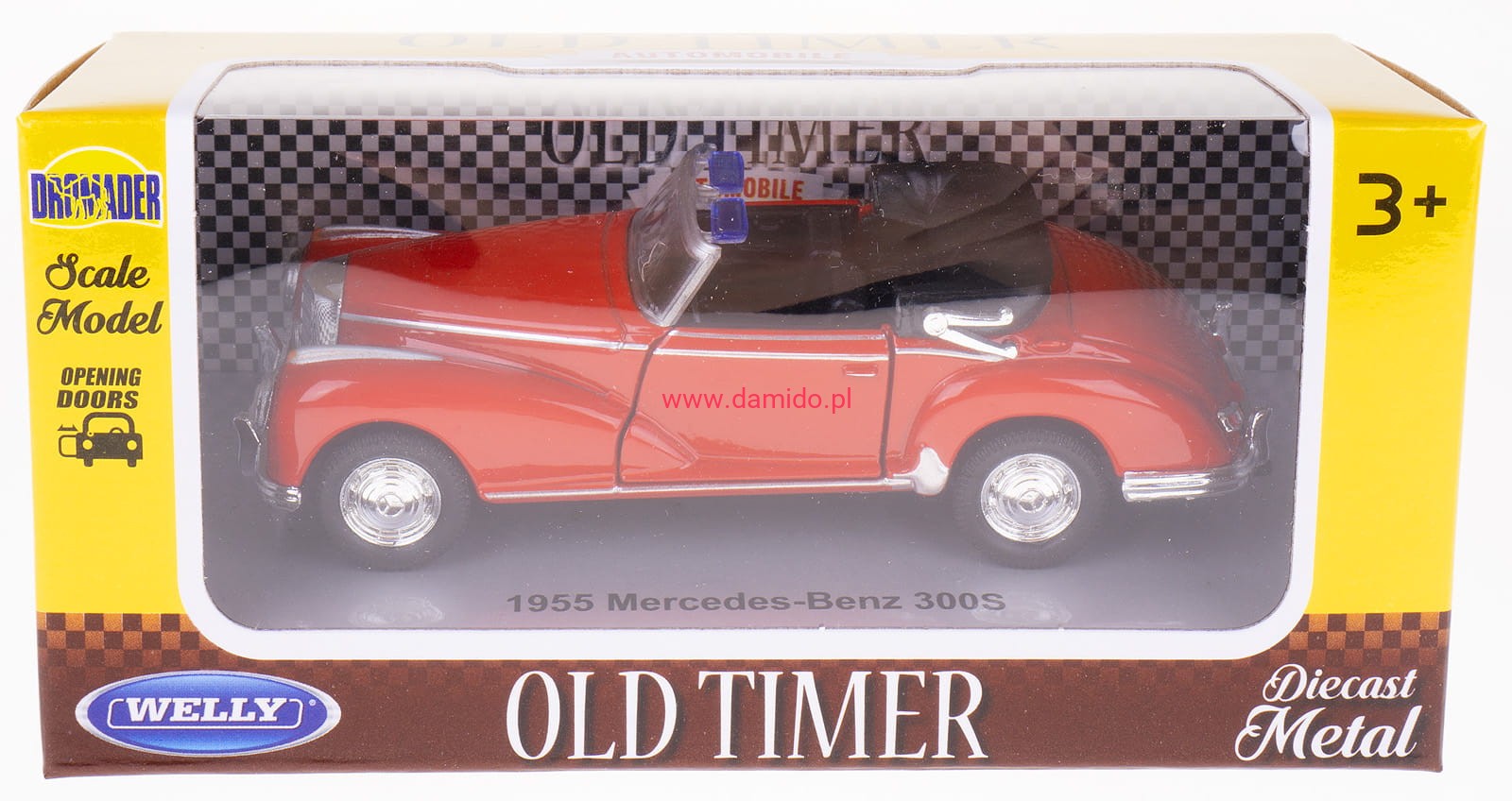 MERCEDES-BENZ 300S CABRIO MODEL WELLY 1:34/39 CZERWONY BEZ DACHU