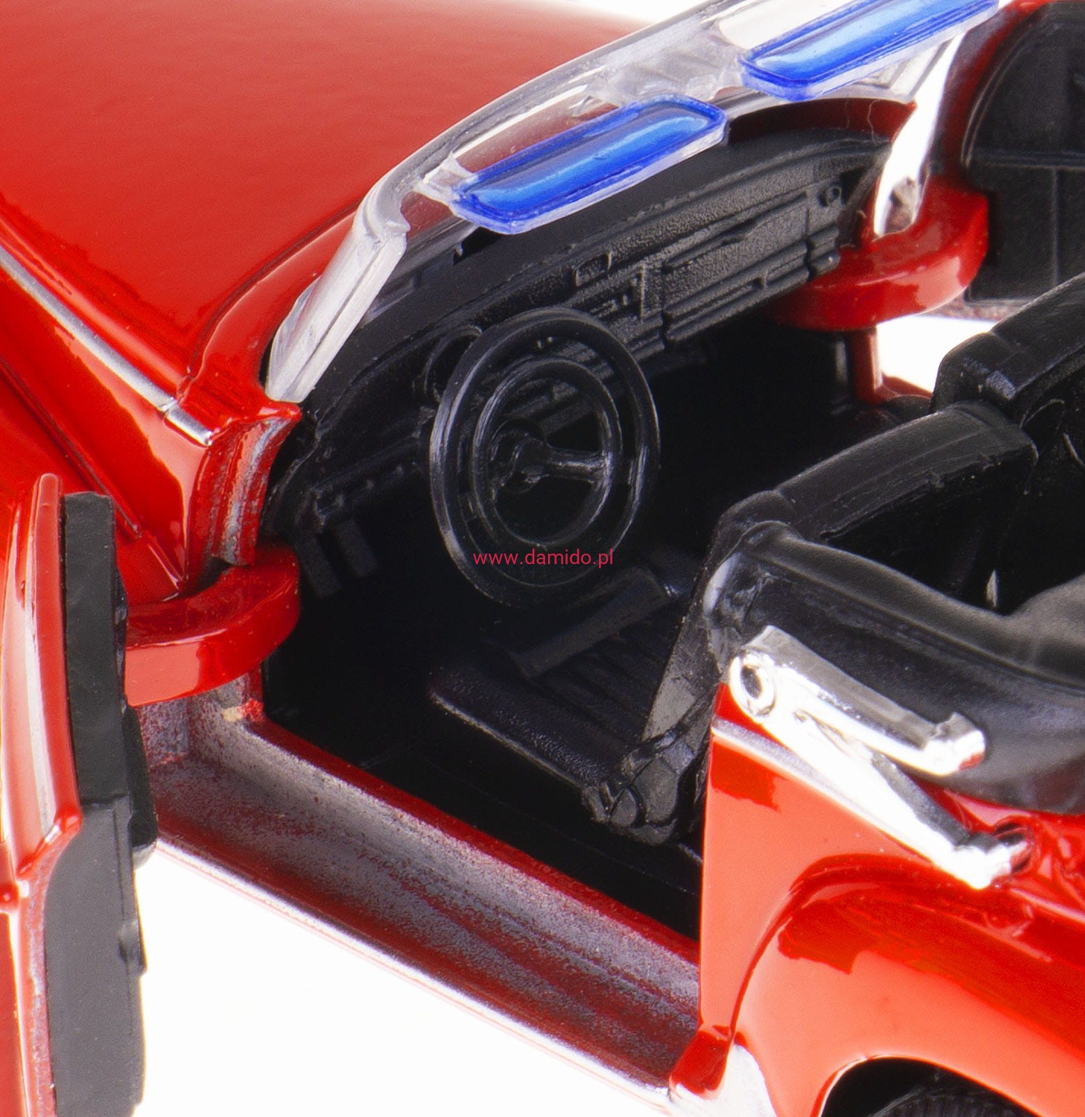 Model wykonany jest z metalu i plastiku. Posiada otwierane drzwi oraz gumowe opony.