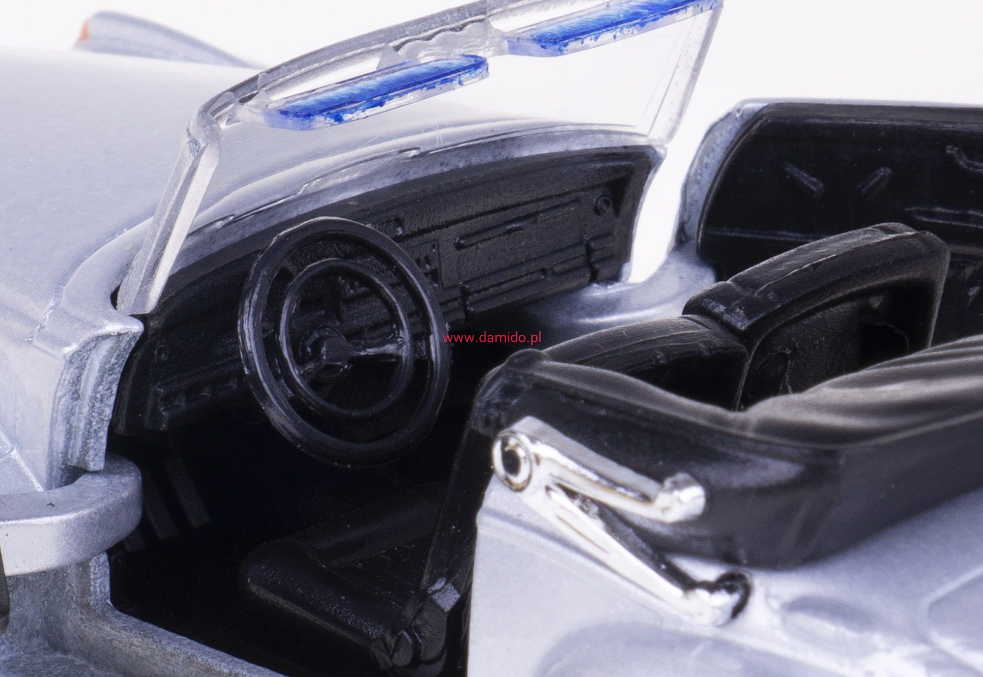 Model wykonany jest z metalu i plastiku. Posiada otwierane drzwi oraz gumowe opony.