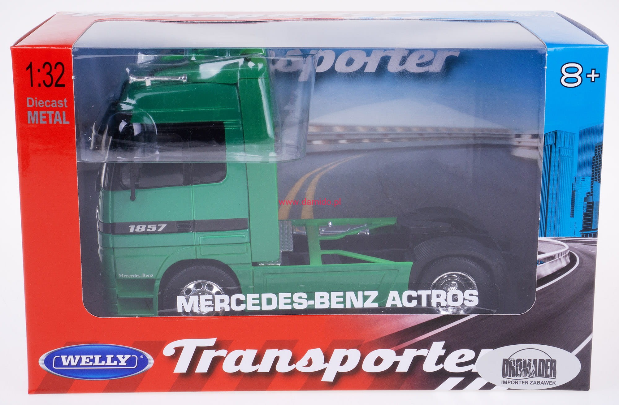 MERCEDES-BENZ ACTROS CIĄGNIK TIRMERCEDES-BENZ ACTROS CIĄGNIK TIR METAL 1:32 WELLY ZIELONY