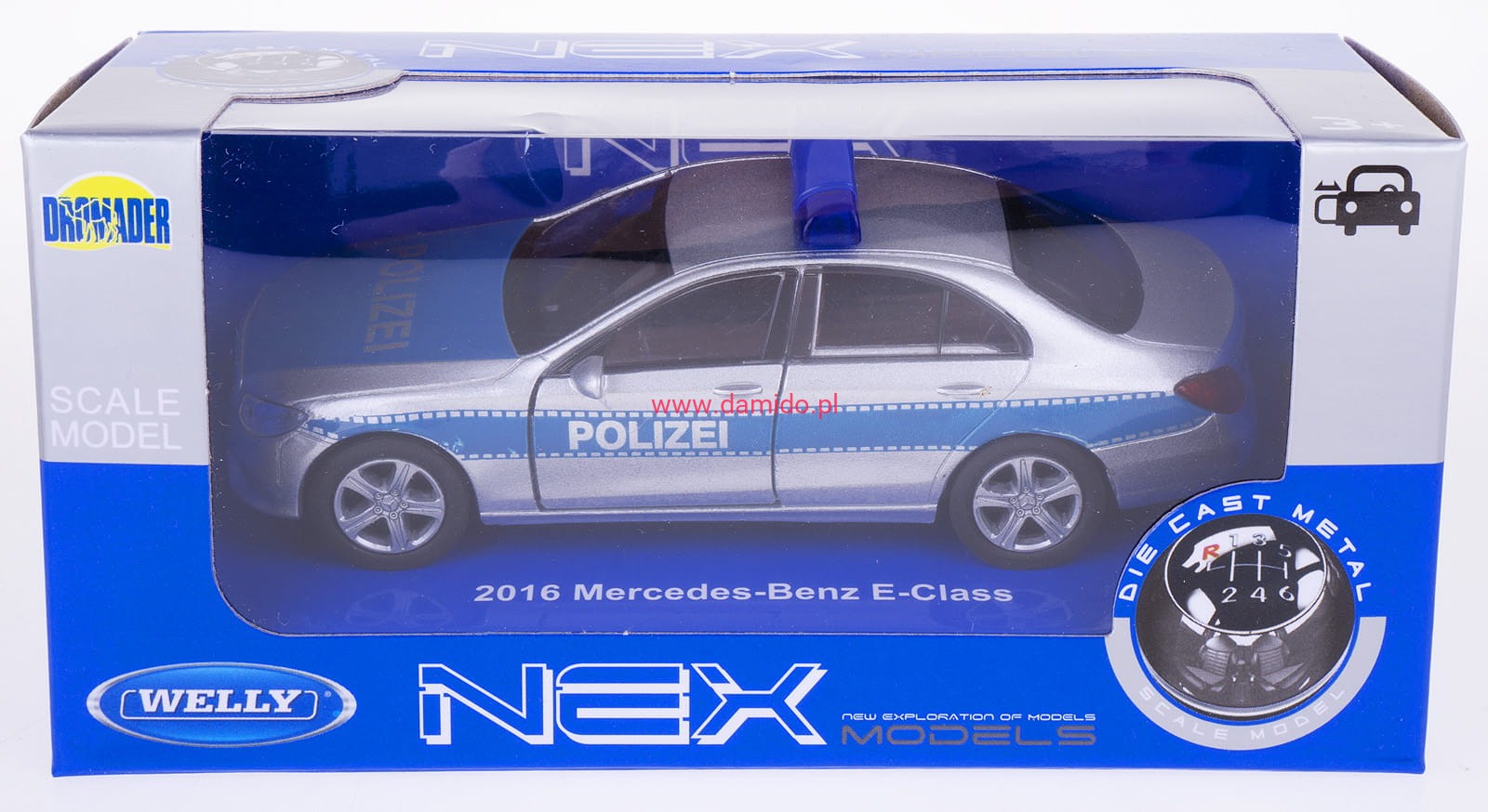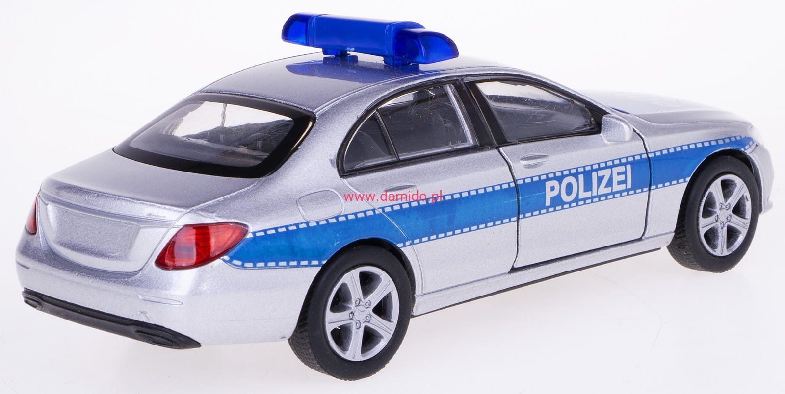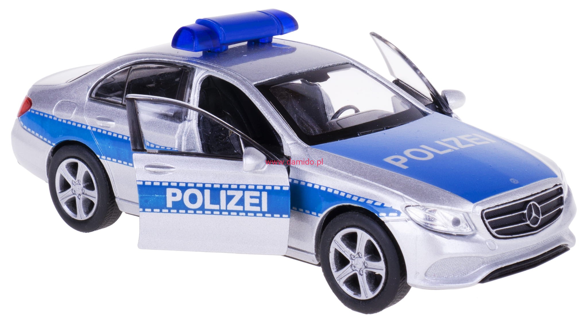 Model MERCEDES-BENZ E-CLASS POLICJA wykonany jest w skali 1:34\39 firmy WELLY.