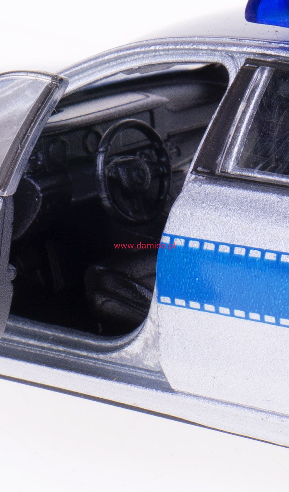 Model wykonany jest z metalu i plastiku. Posiada otwierane drzwi oraz gumowe opony.