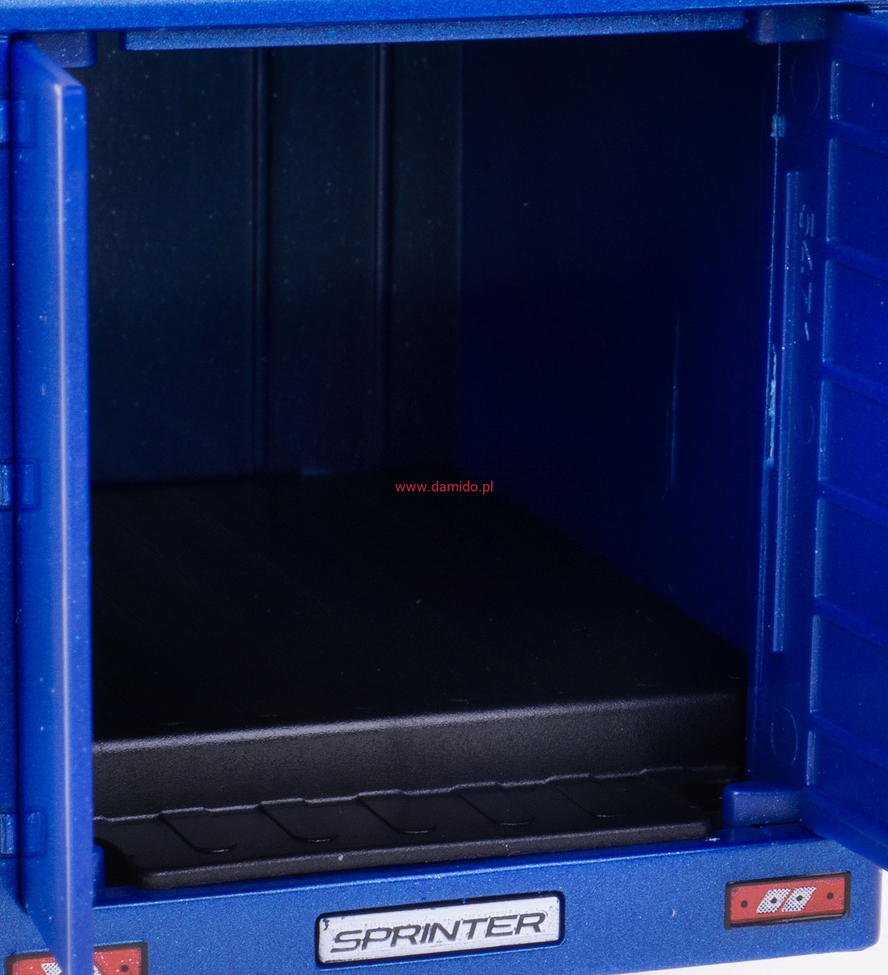 Model posiada otwierane przednie drzwi i tylne drzwi naczepy przez, które można zajrzeć do wnętrza modelu oraz posiada gumowe opony.
