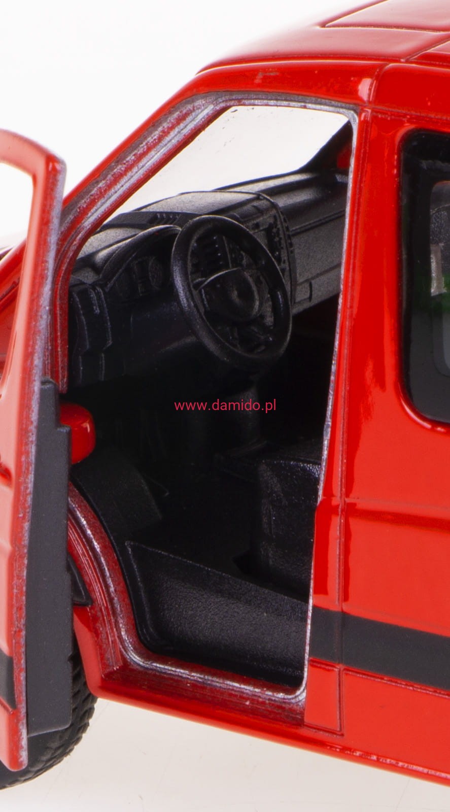Model wykonany jest z metalu z dodatkiem plastiku. Posiada otwierane drzwi, gumowe opony.