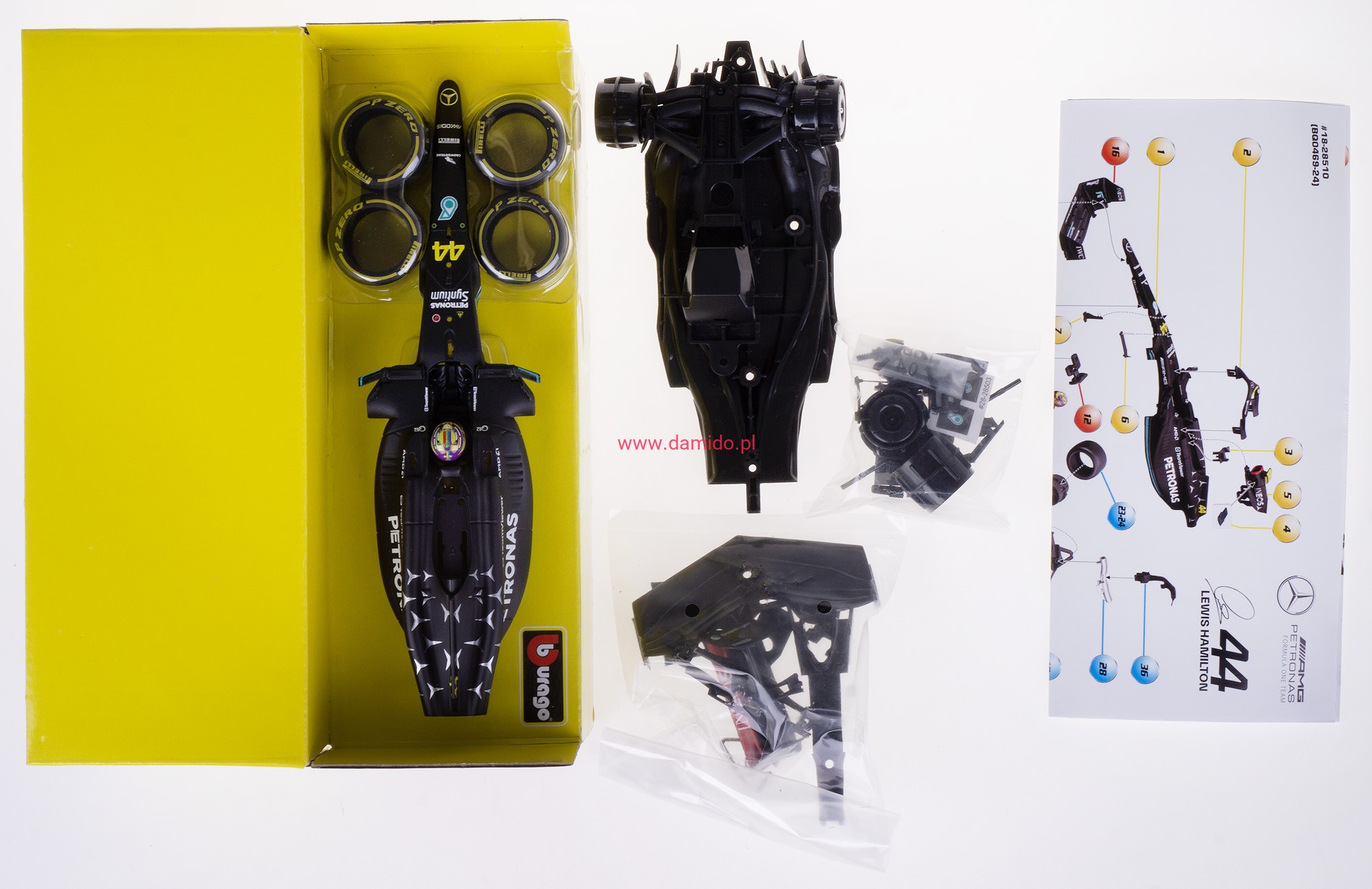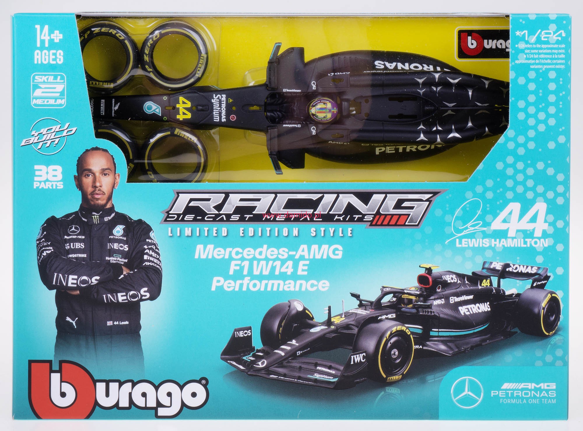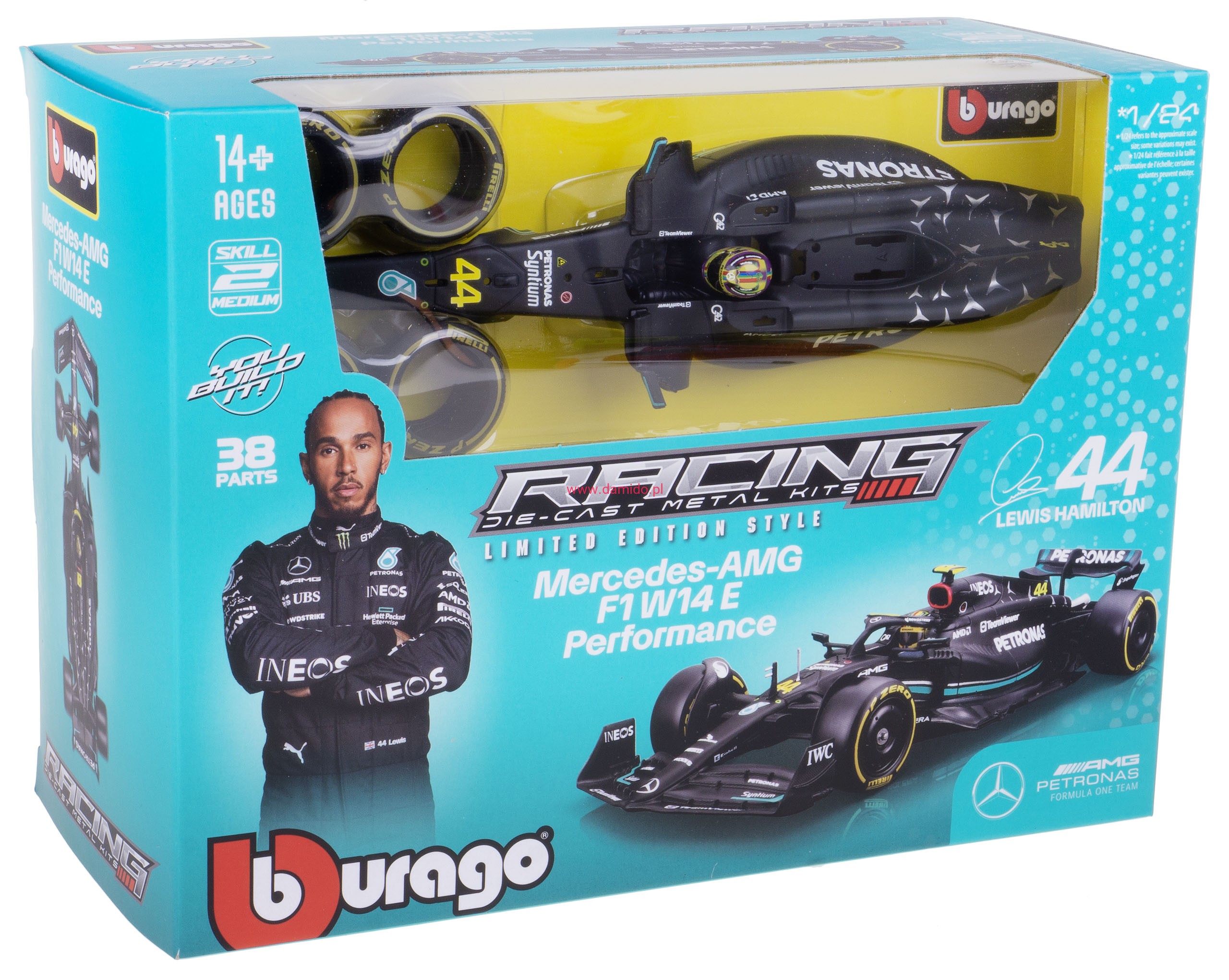 MERCEDES W14 E MODEL METALOWY DO SKŁADANIA KIT BBURAGO 1:24 #44 L. HAMILTON