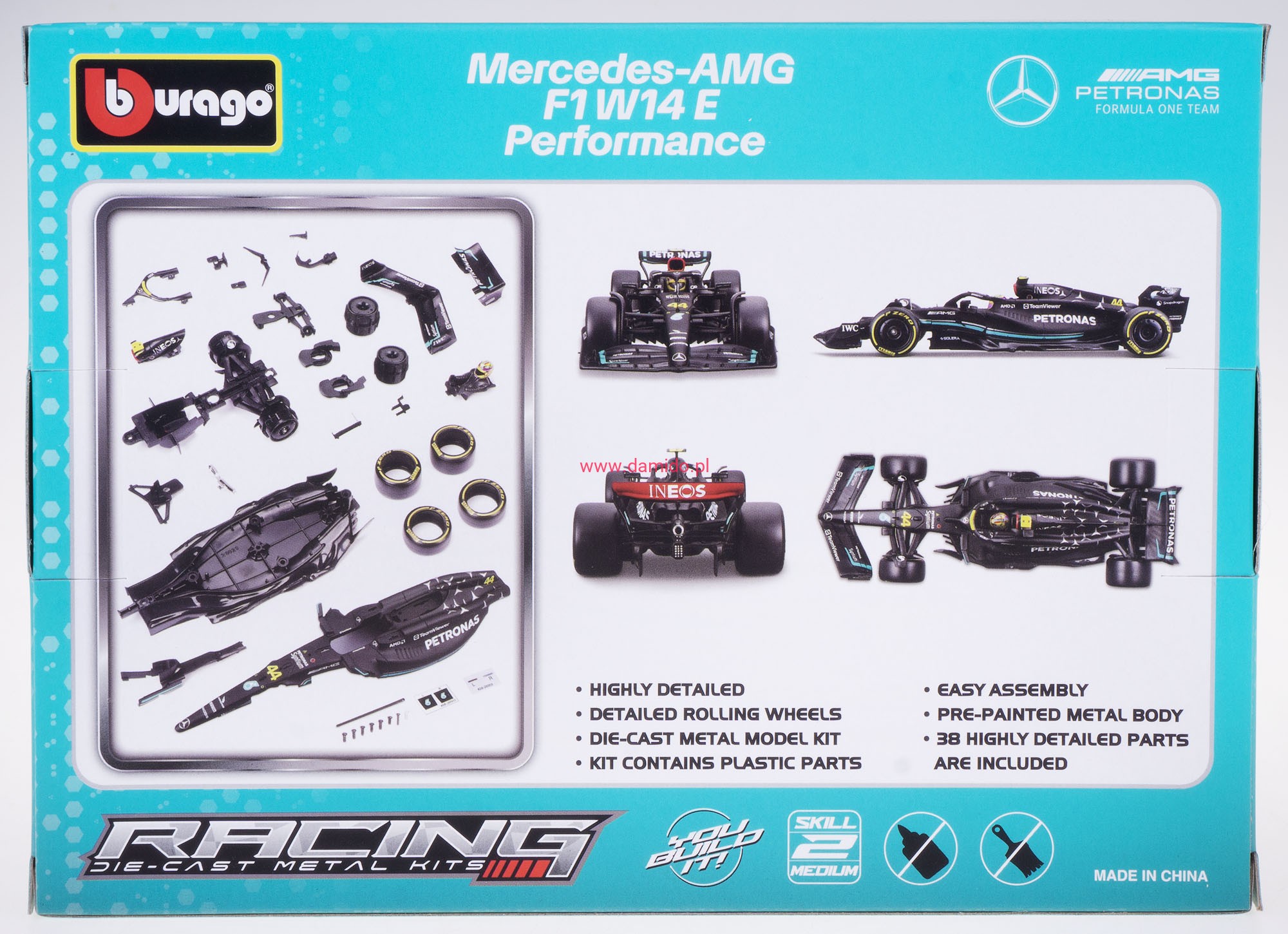 Model MERCEDES W14 E do składania wykonany jest w skali 1:24 firmy BBURAGO.