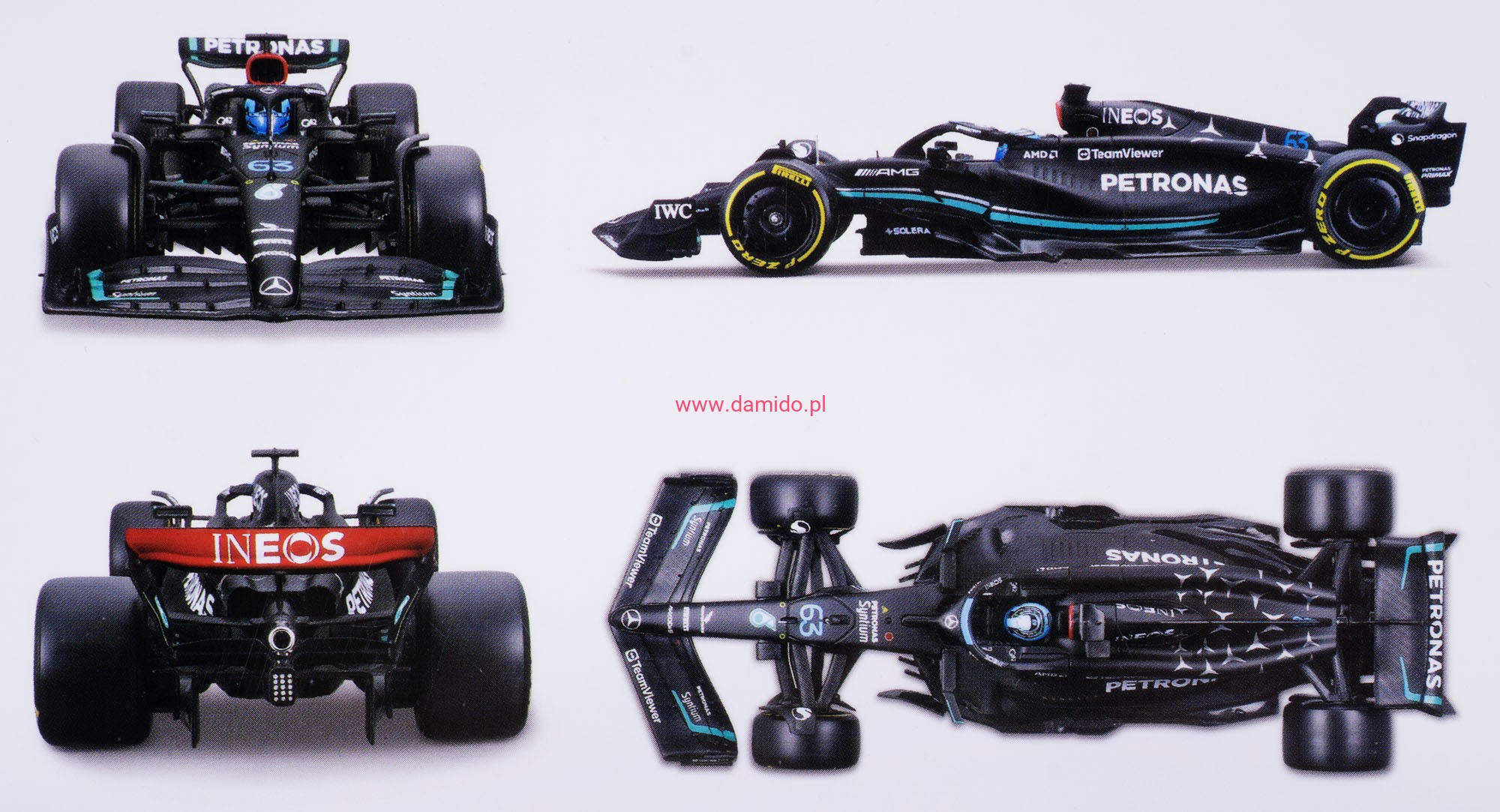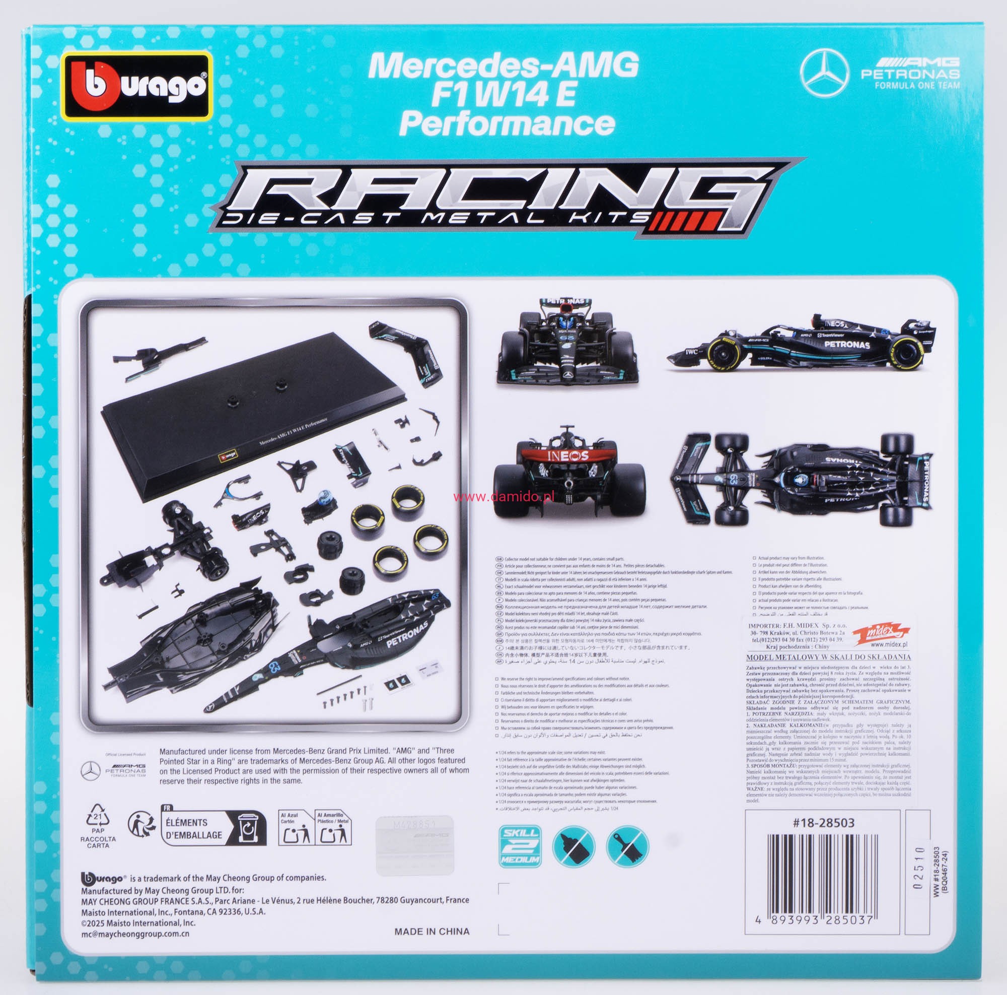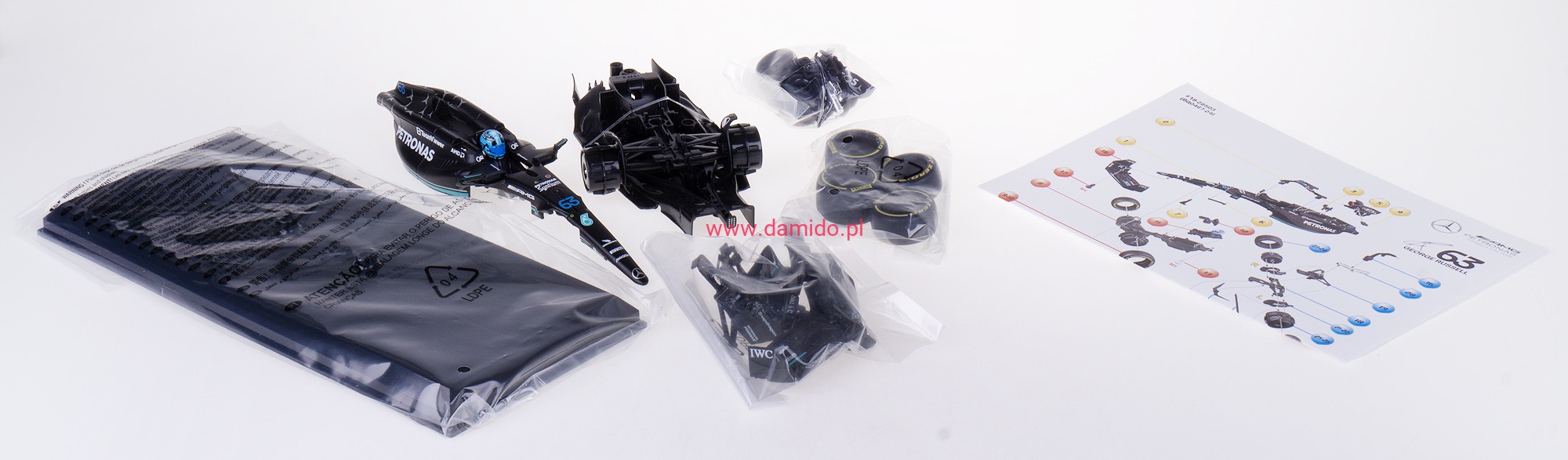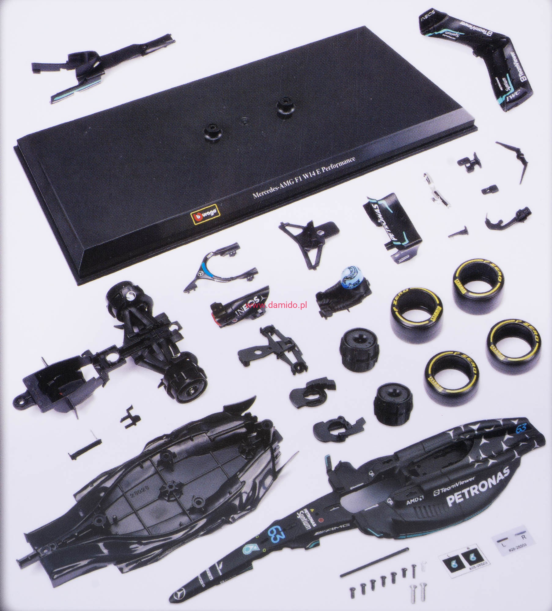Model MERCEDES W14 E do składania wykonany jest w skali 1:24 firmy BBURAGO.