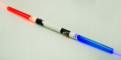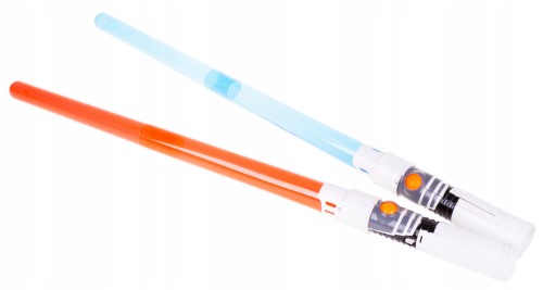 Miecze mają przycisk, którym uruchamia podświetlenie mieczy jeden na czerwono, a drugi na niebiesko oraz wydają realistyczne dźwięki walki.