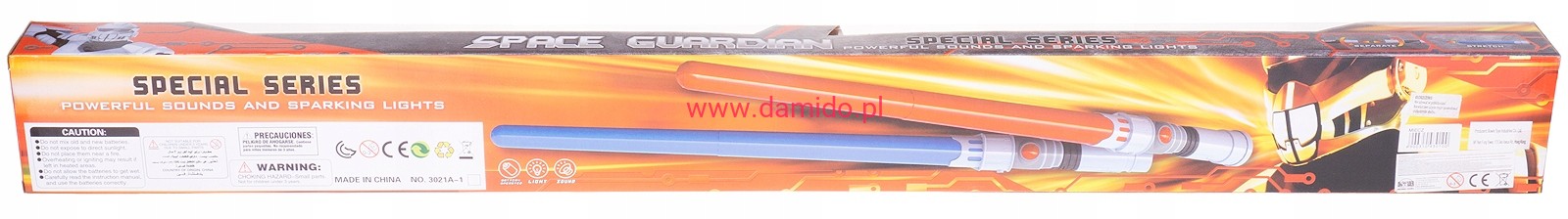 miecze zasilane 4 baterie LR3 typu AAA (po 2 baterie na miecz - nie dołączone)