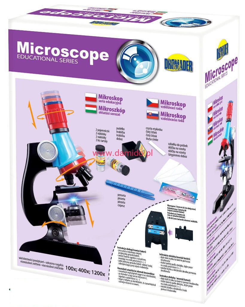 MIKROSKOP EDUKACYJNY LED 100x 400x 1200x + AKCESORIA DROMADER