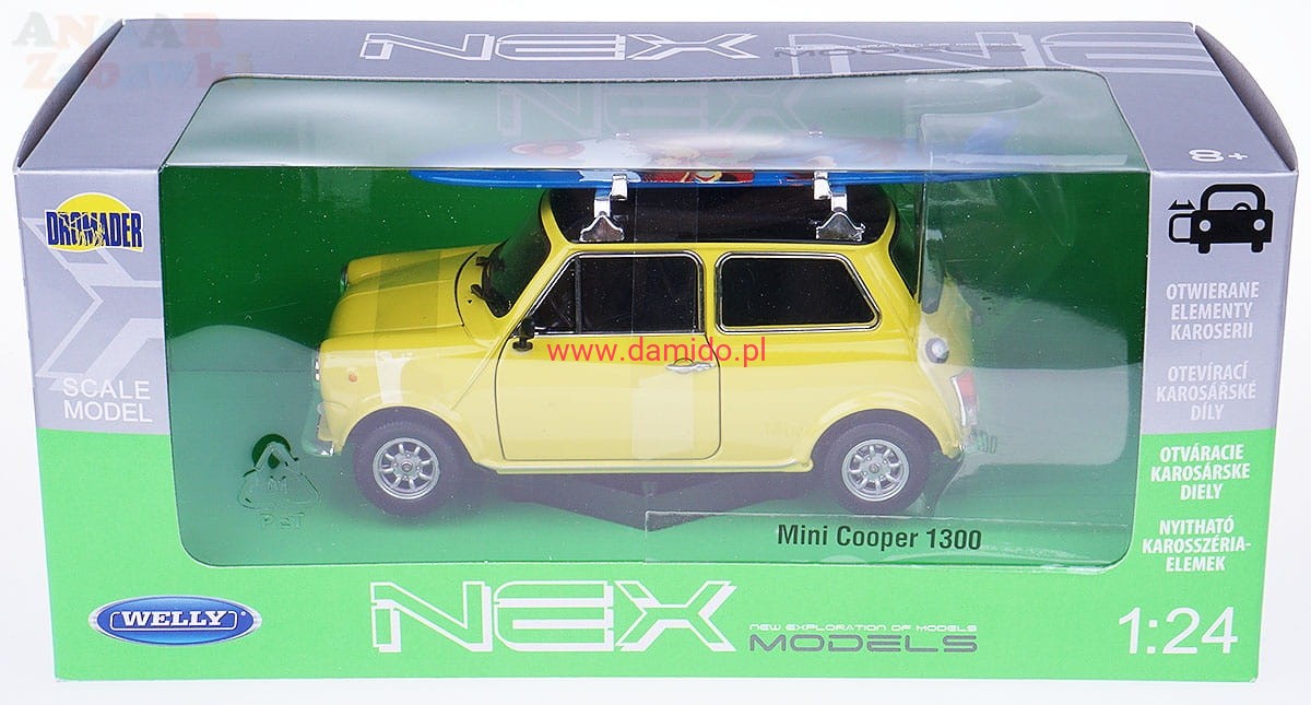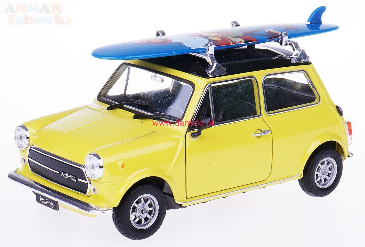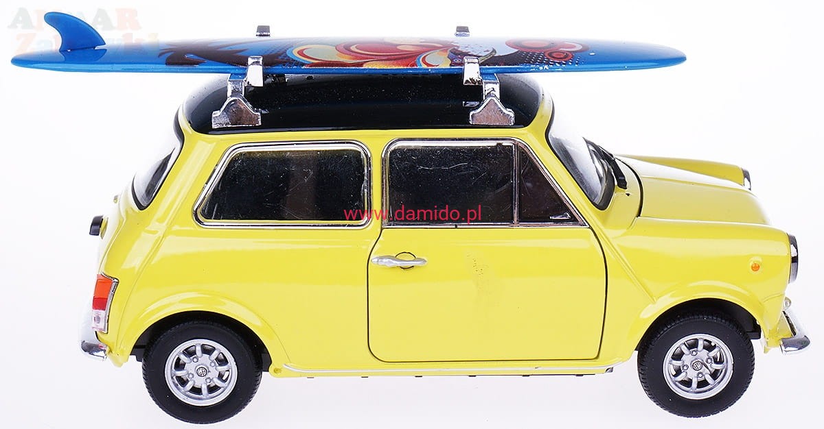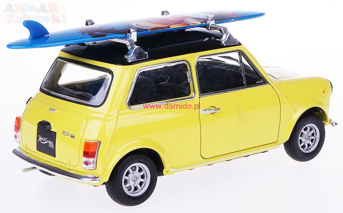 MINI COOPER 1300 MODEL METALOWY WELLY 1:24 ŻÓŁTY Z DESKĄ