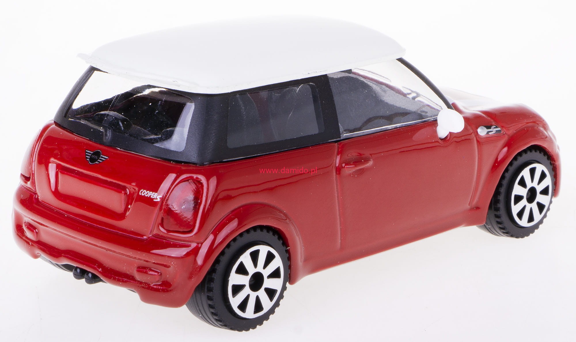 Model MINI COOPER S wykonany z metalu i plastiku w skali 1:28 z napędem typu ''Pull Back" firmy KINSMART.