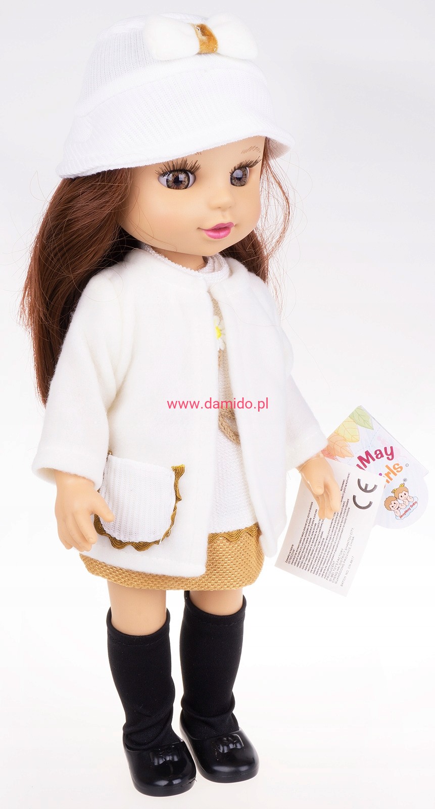 MODNA LALKA W PŁASZCZU Z MUZYKĄ 34 CM KREMOWY