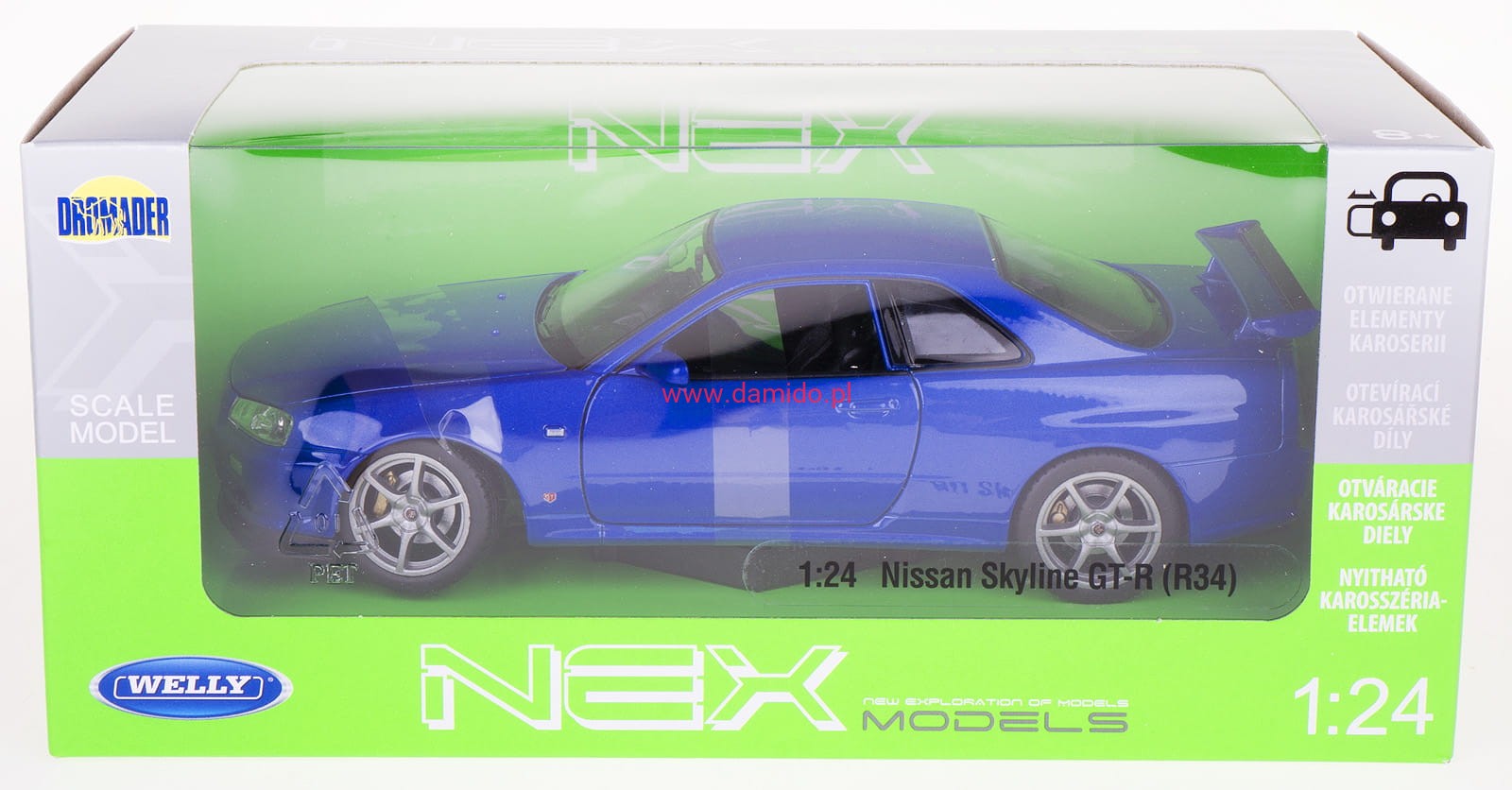 Model NISSAN SKYLINE GT-R wykonany jest w skali 1:24 firmy WELLY.
