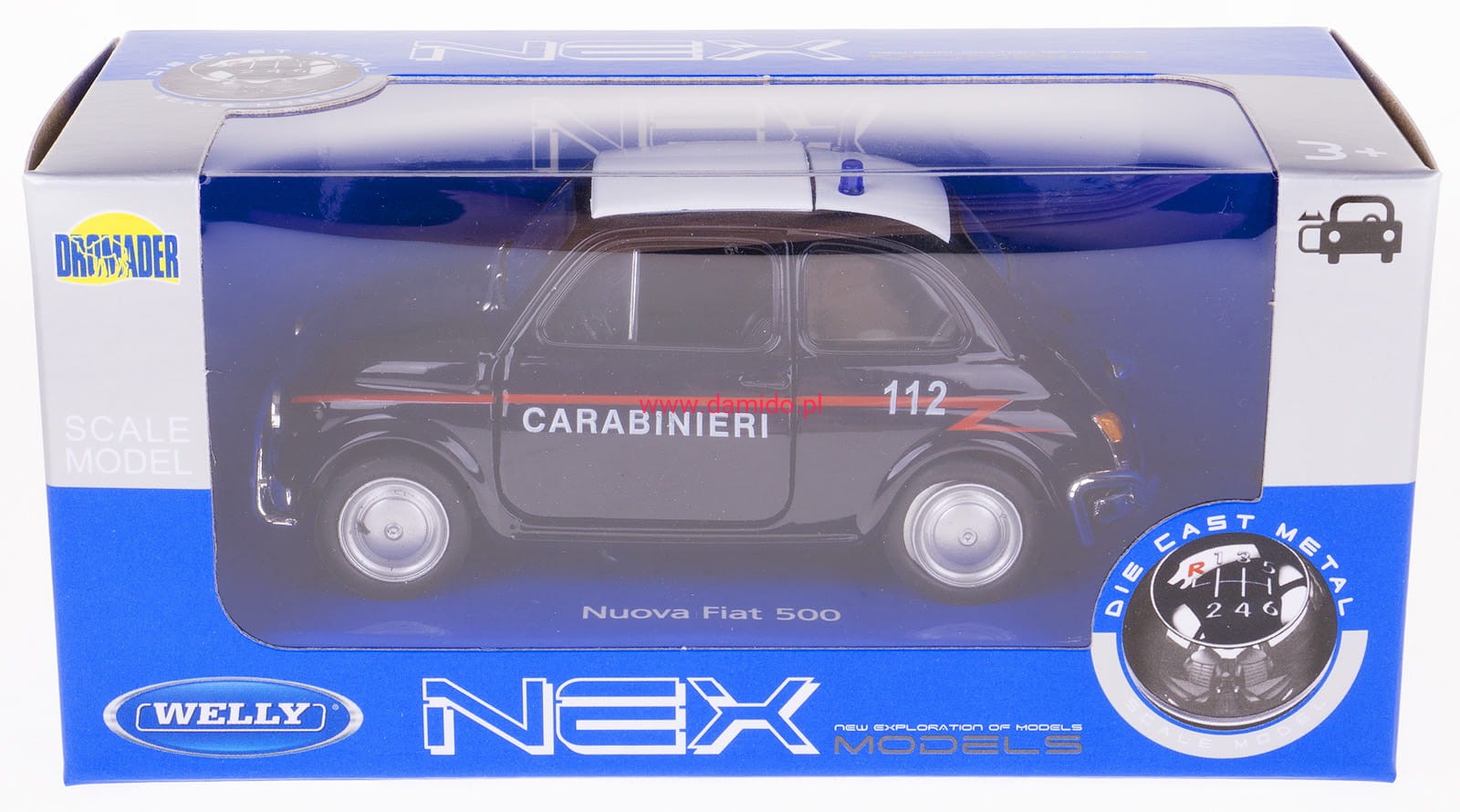 NUOVA FIAT 500 MODEL METALOWY WELLY SKALA 1:34/39 CARABINIERI