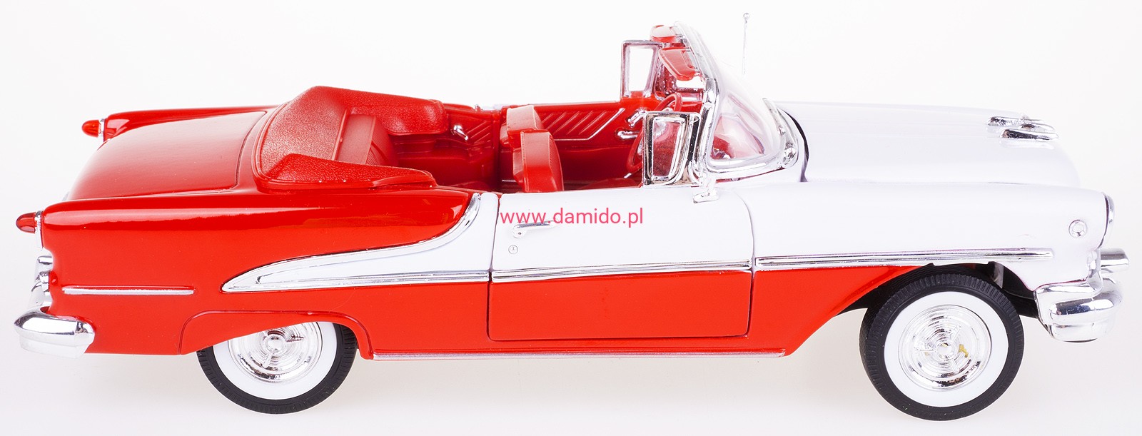 1955 OLDSMOBILE SUPER 88 CABRIOLET MODEL METALOWY WELLY 1:24 CZERWONO-BIAŁY 12070