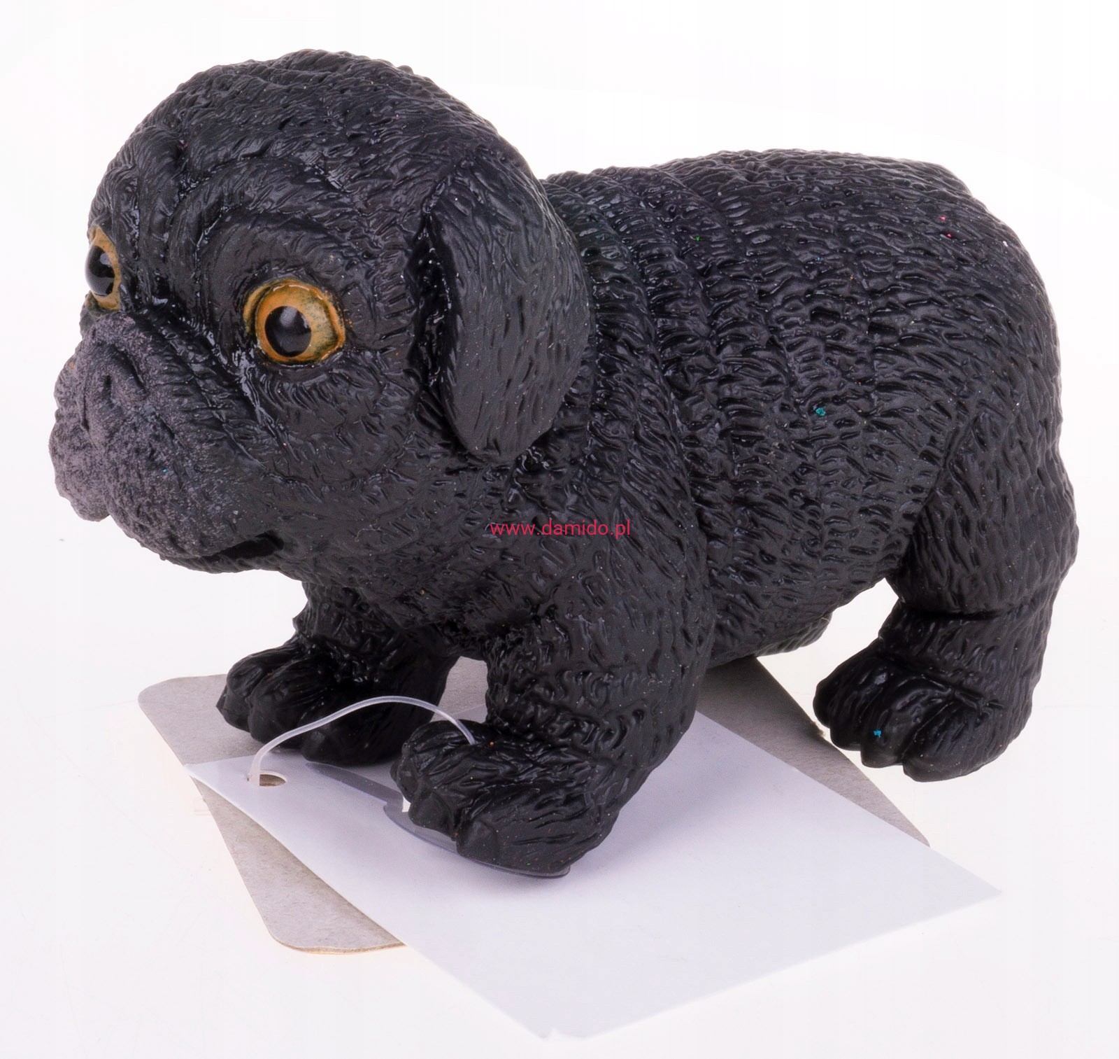 Śliczny gumowy elastyczny buldog, wyglądający jak prawdziwy, sprawi wiele radości podczas zabawy.