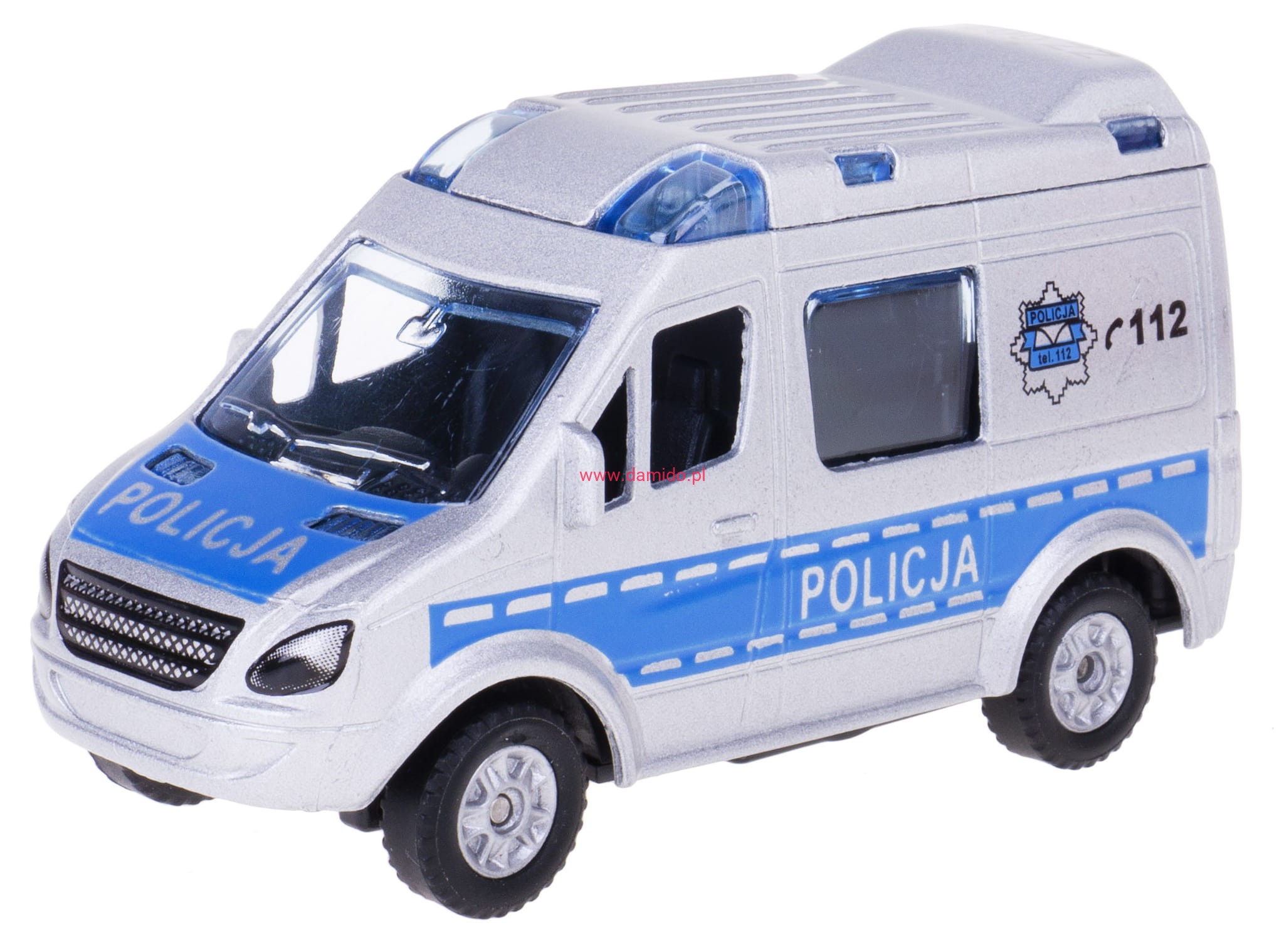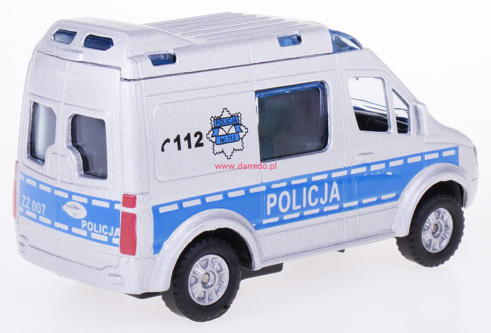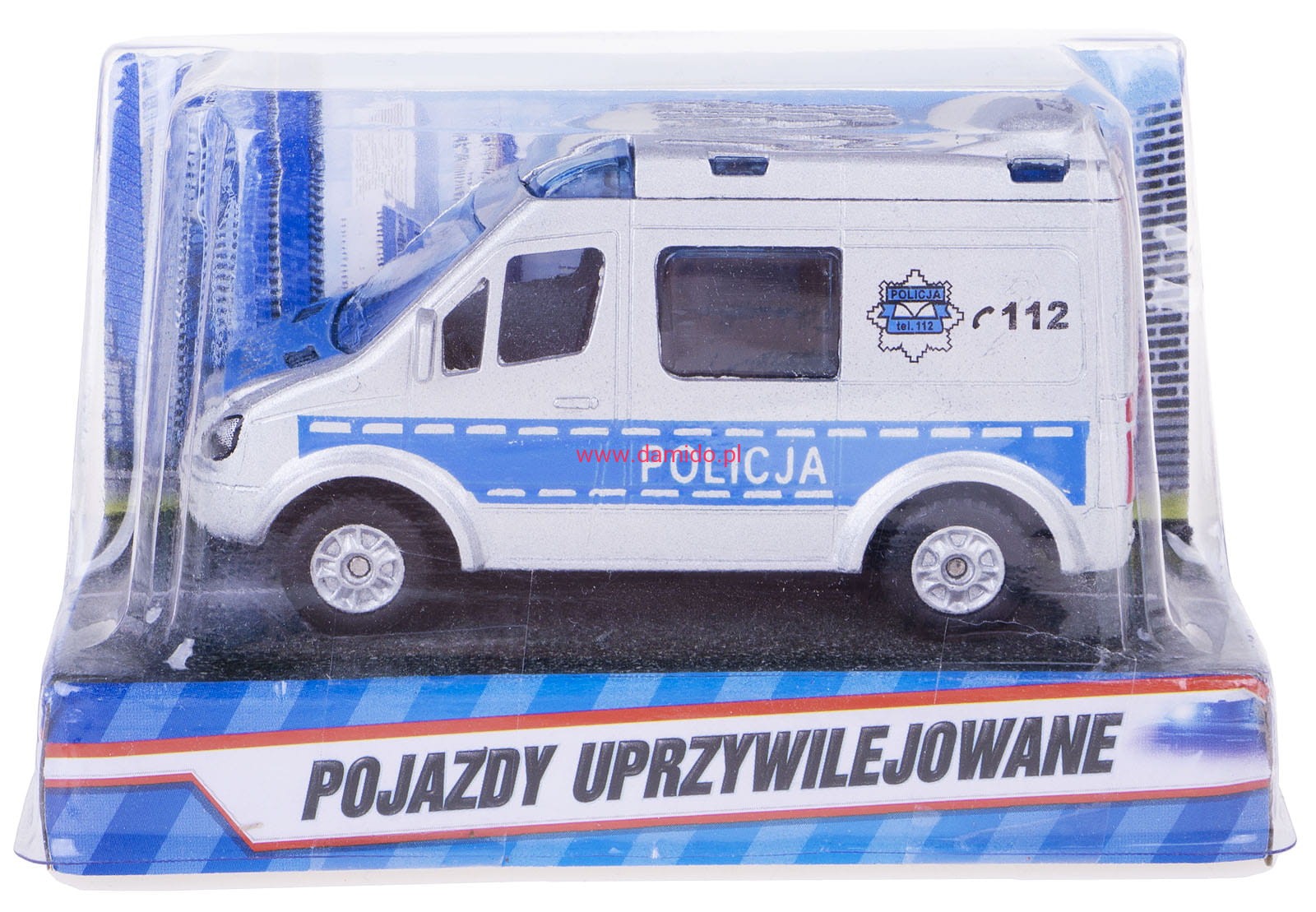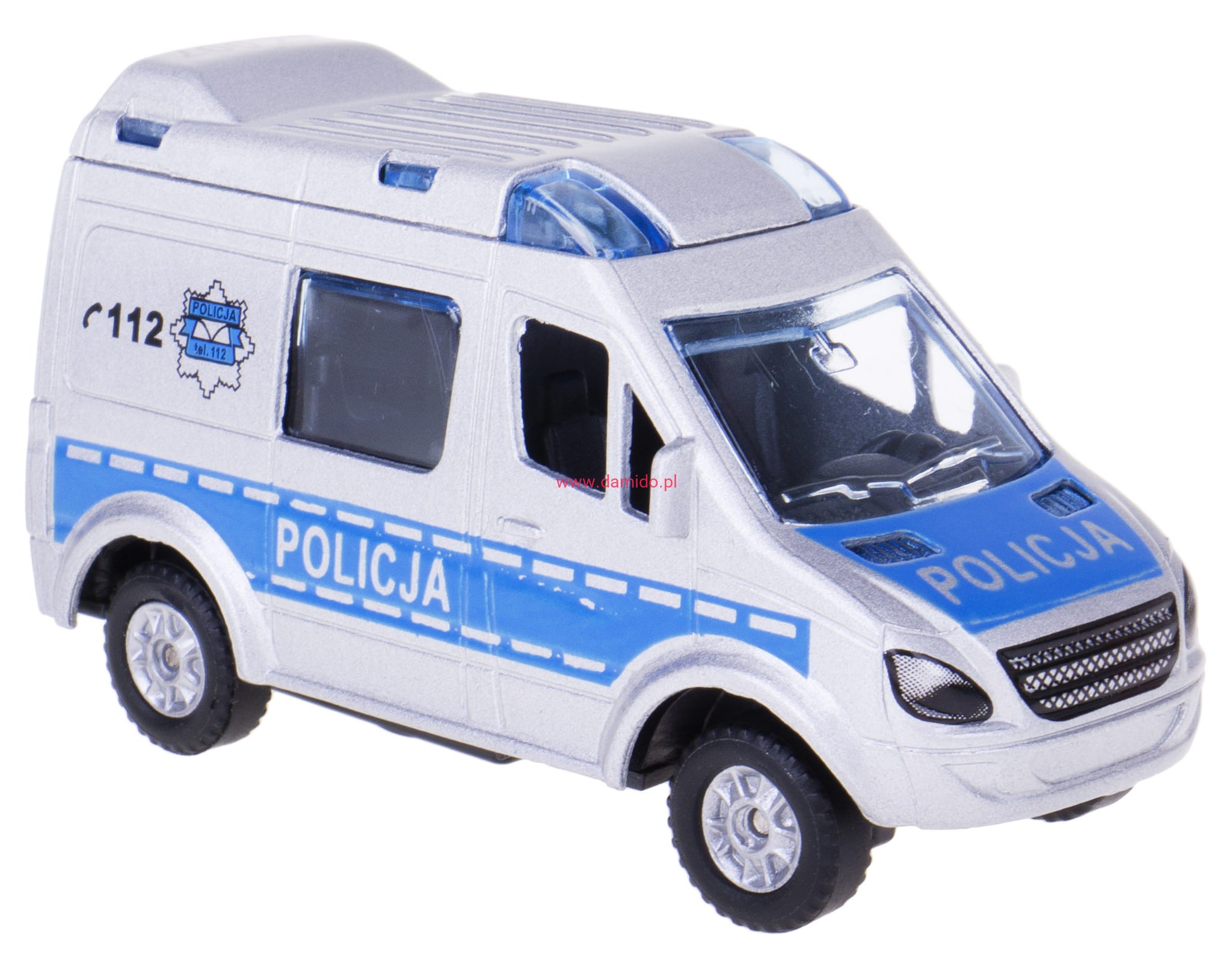 Pojazd uprzywilejowany POLICYJNY VAN wykonany z metalu i plastiku z napędem pull-back.
