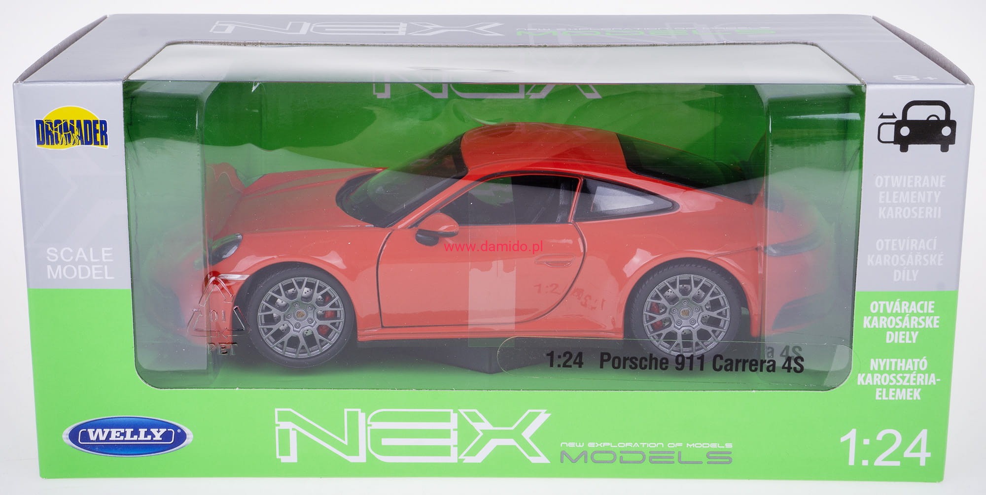 Model PORSCHE 911 CARRERA 4S wykonany jest w skali 1:24 firmy WELLY.