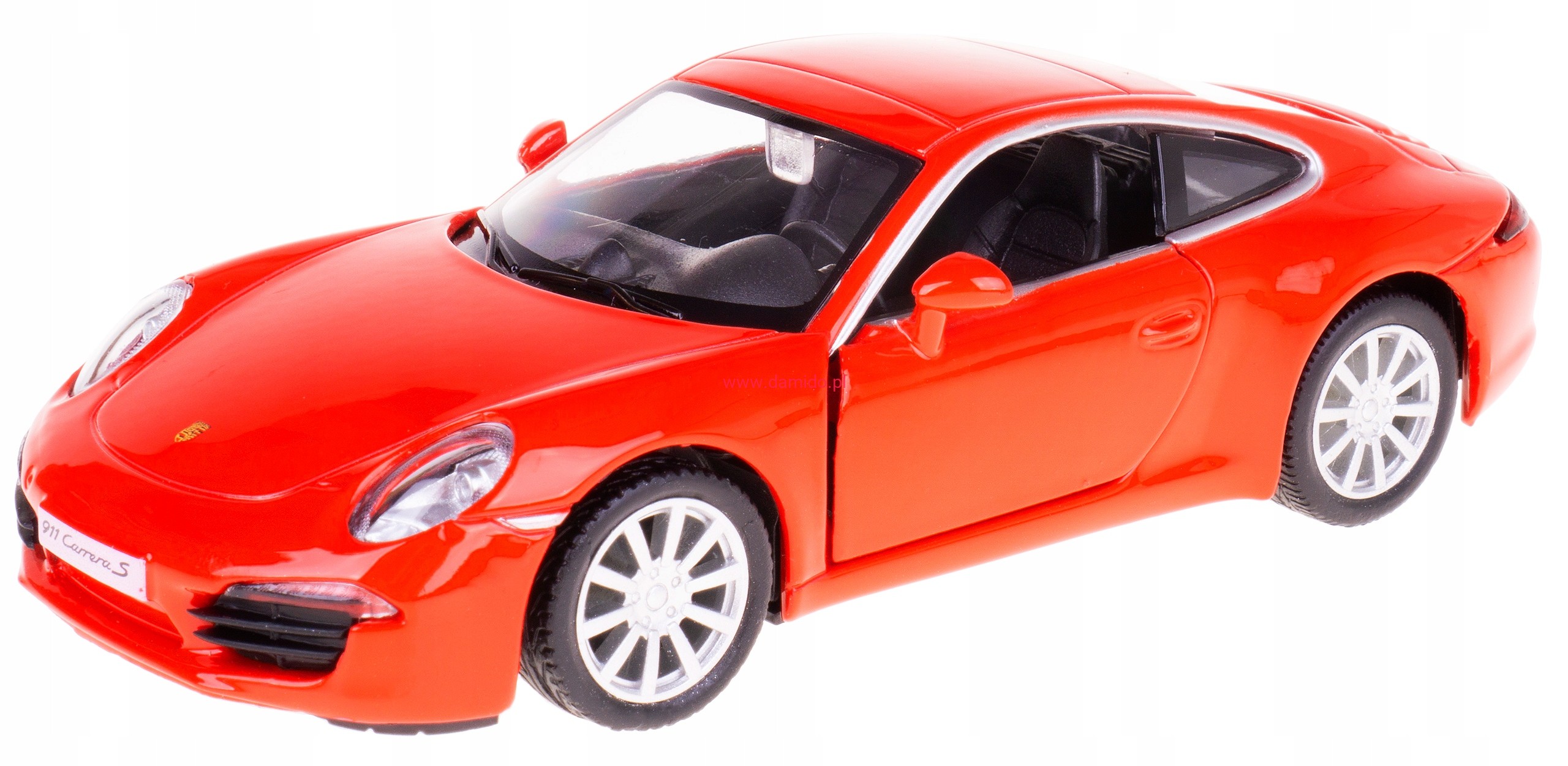 Model PORSCHE 911 CARRERA S w skali 1:32/39 z napędem ręcznym - wykonany został z metalu i plastiku na gumowych oponach.