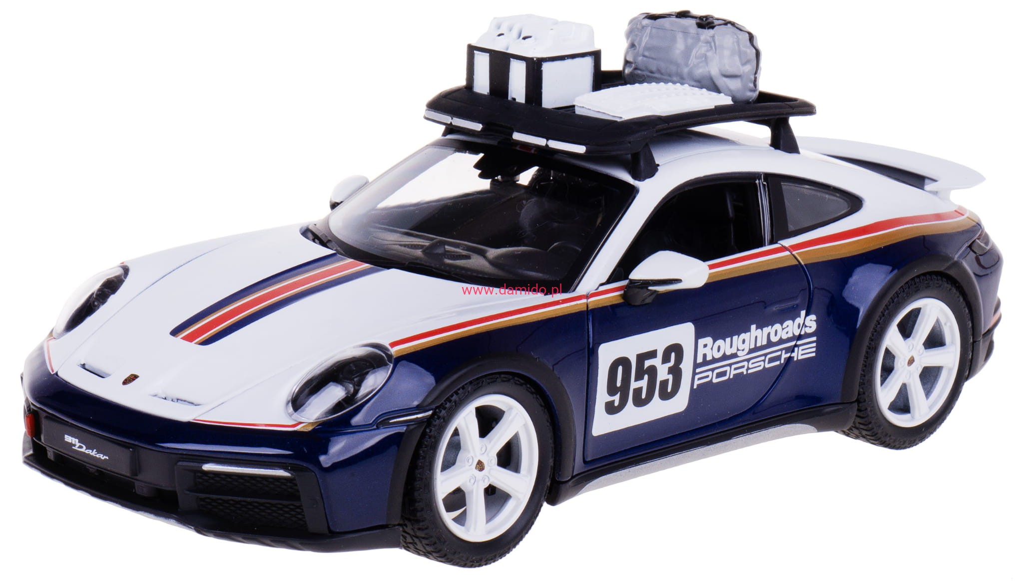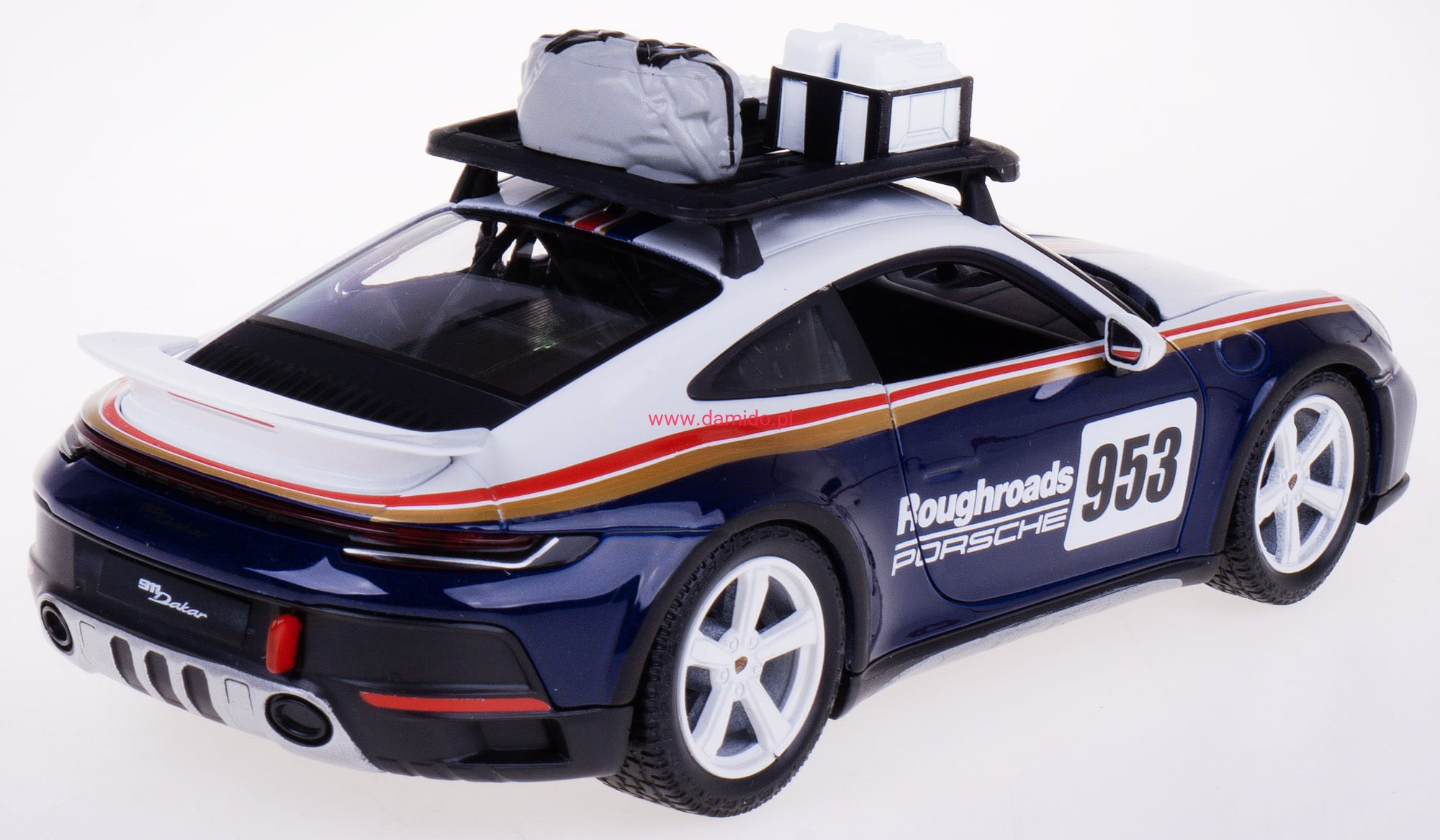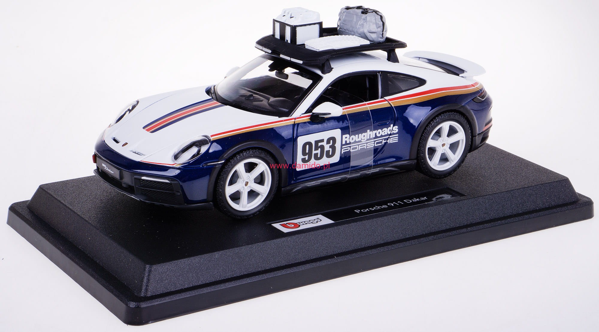 Model PORSCHE 911 DAKAR 953 wykonany jest w skali 1:24 firmy BBURAGO. Modele charakteryzują się znakomitą jakością i wiernością wykonania.