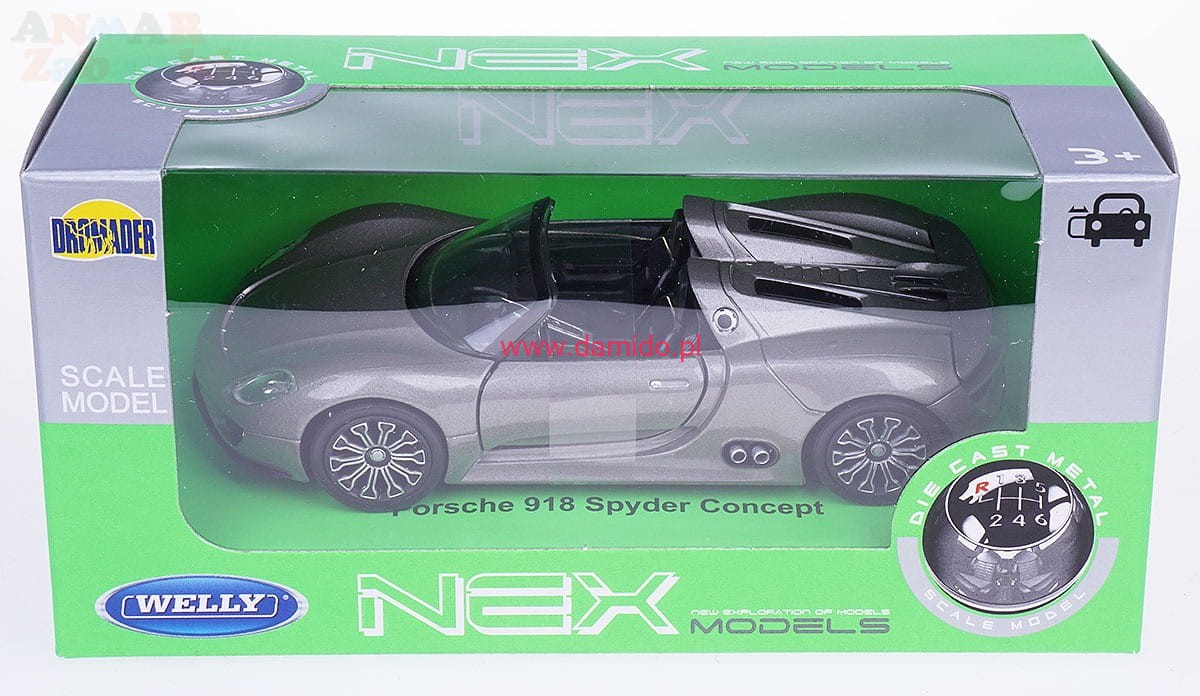 Model PORSCHE 918 SPYDER wykonany jest w skali 1:34-39 firmy WELLY.