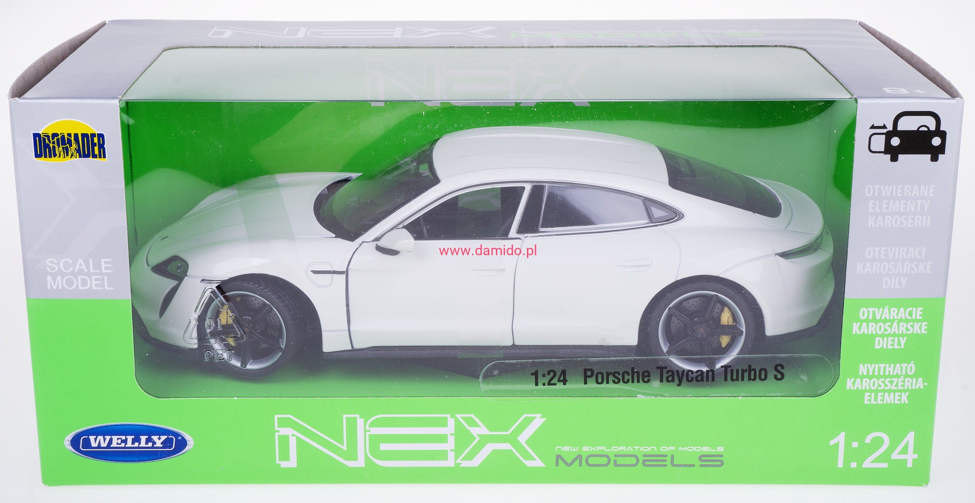 Model PORSCHE TAYCAN TURBO S wykonany jest w skali 1:24 firmy WELLY. Modele charakteryzują się znakomitą jakością i wiernością wykonania.