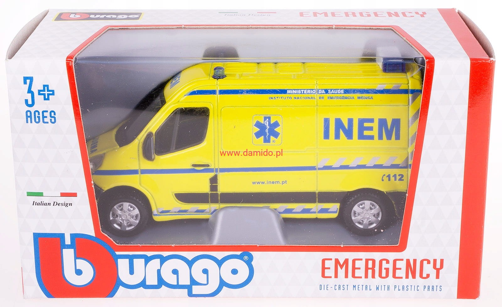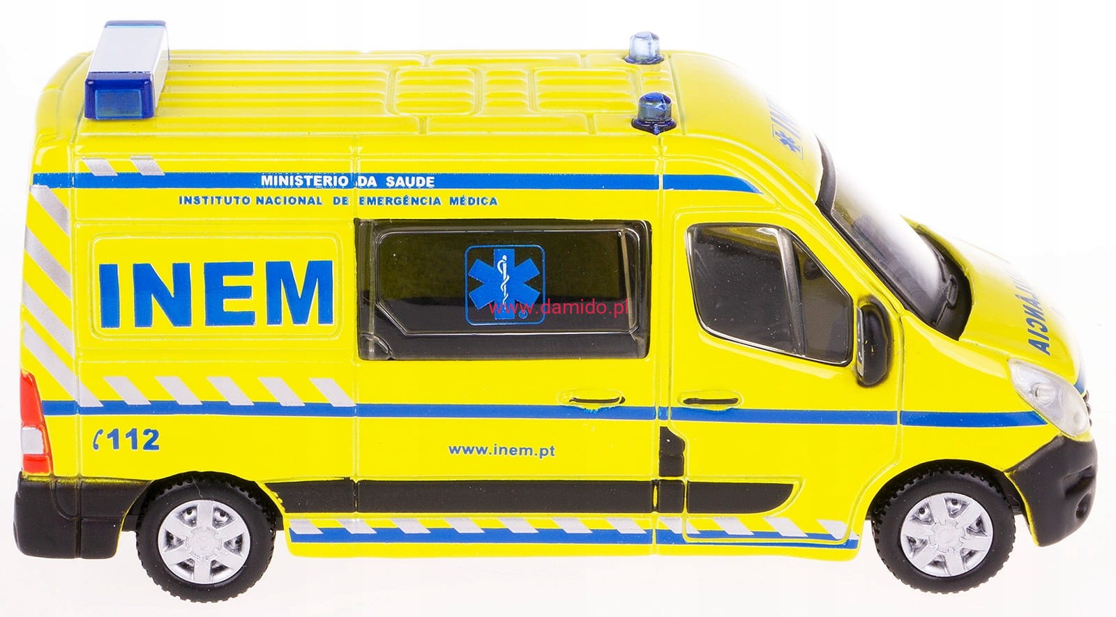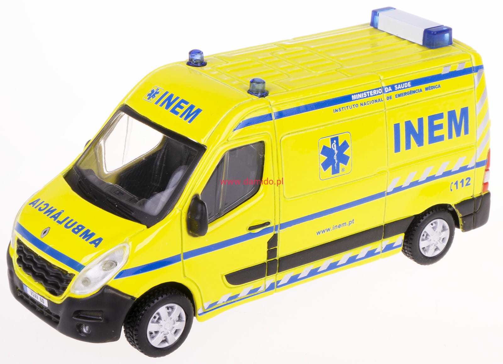 RENAULT MASTER 2010 POGOTOWIE / KARETKA "INEM" (Ministerio da Saude, Republica Rortuguesa) ŻÓŁTE MODEL METALOWY FIRMY BBURAGO W SKALI 1:50 #E8