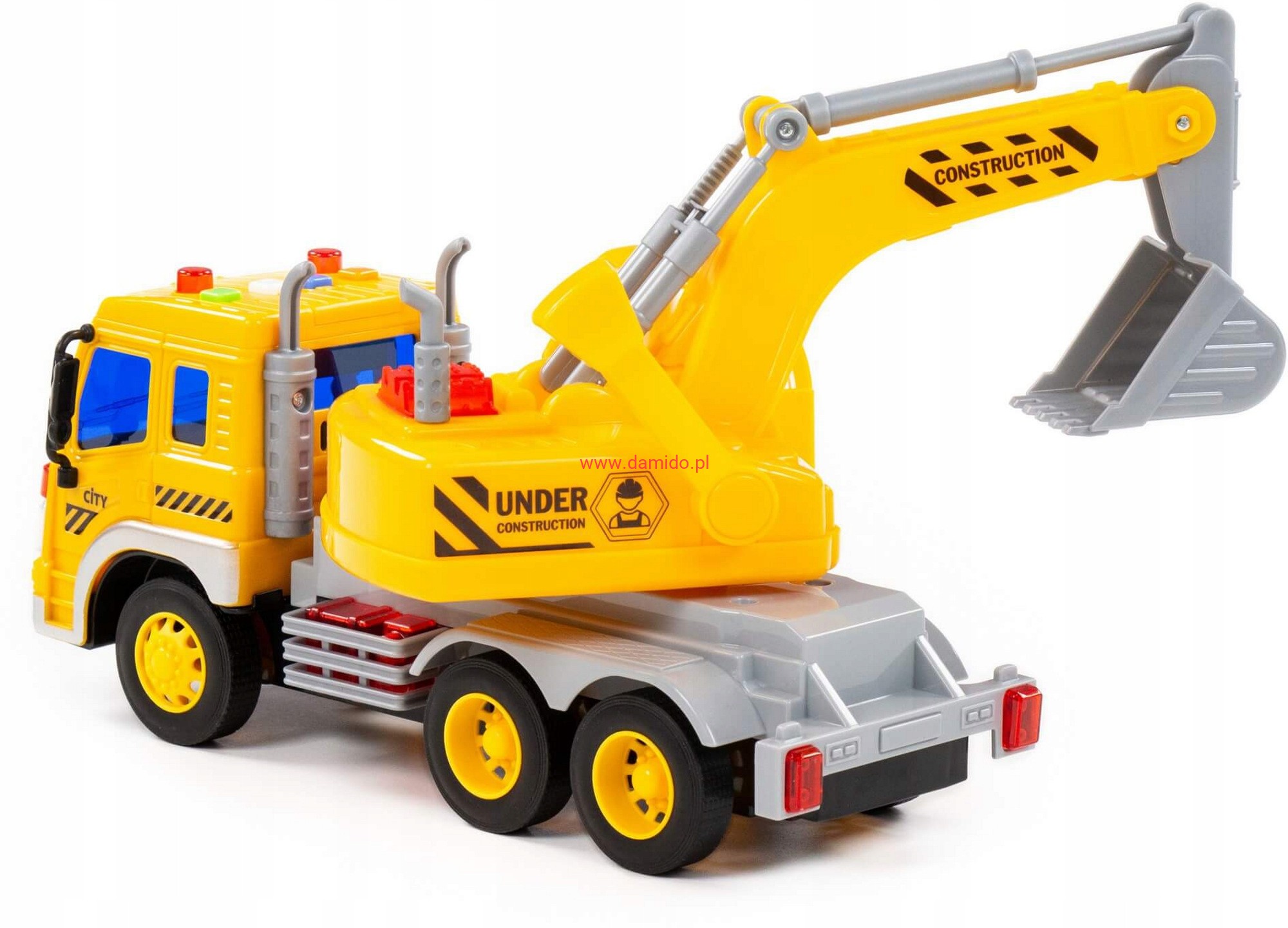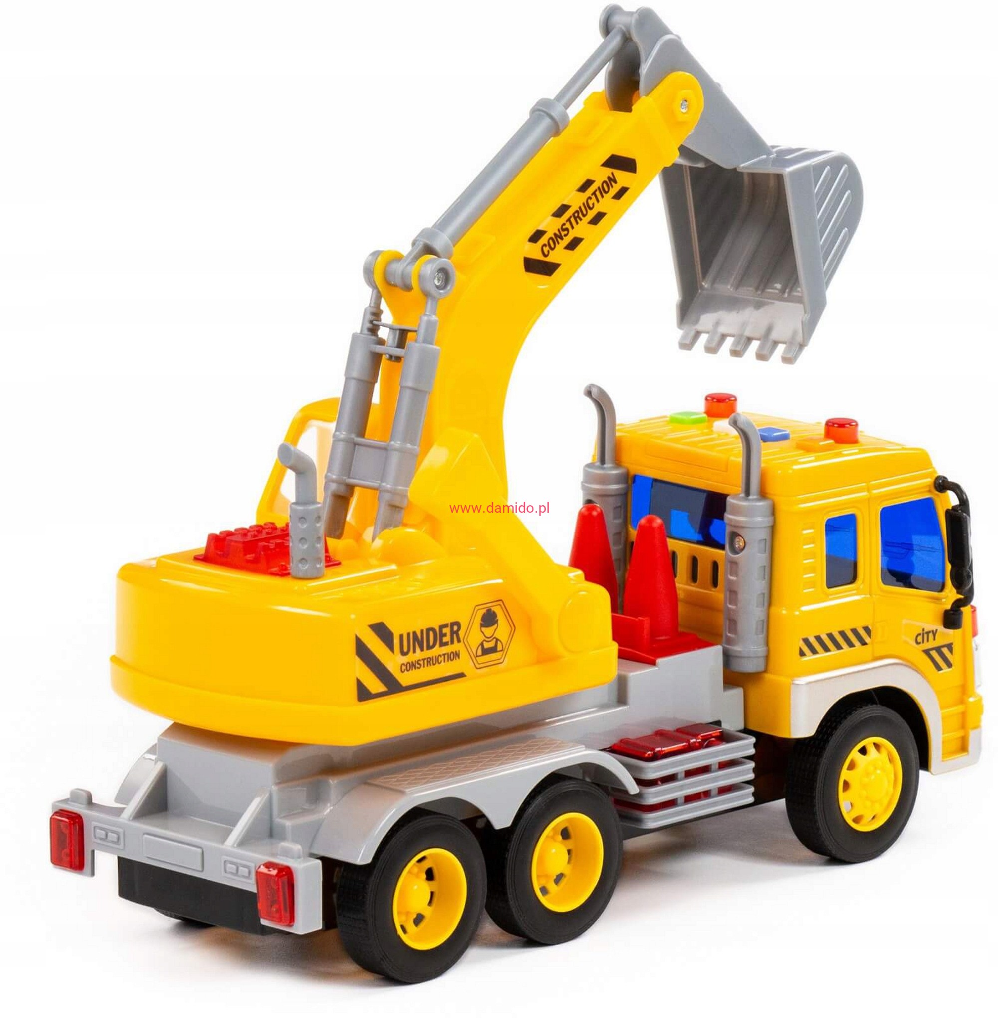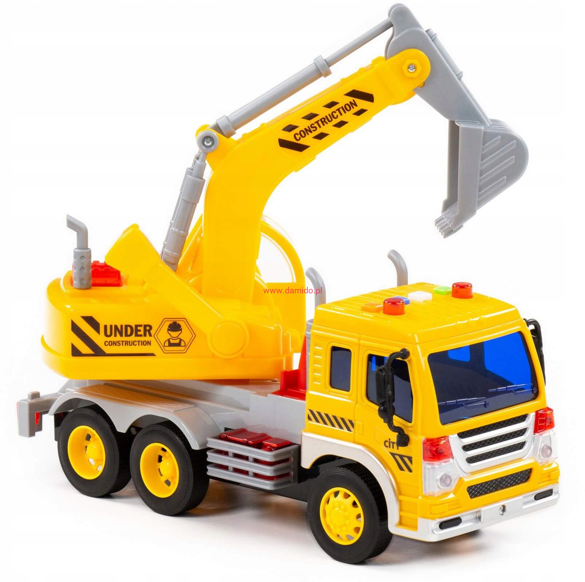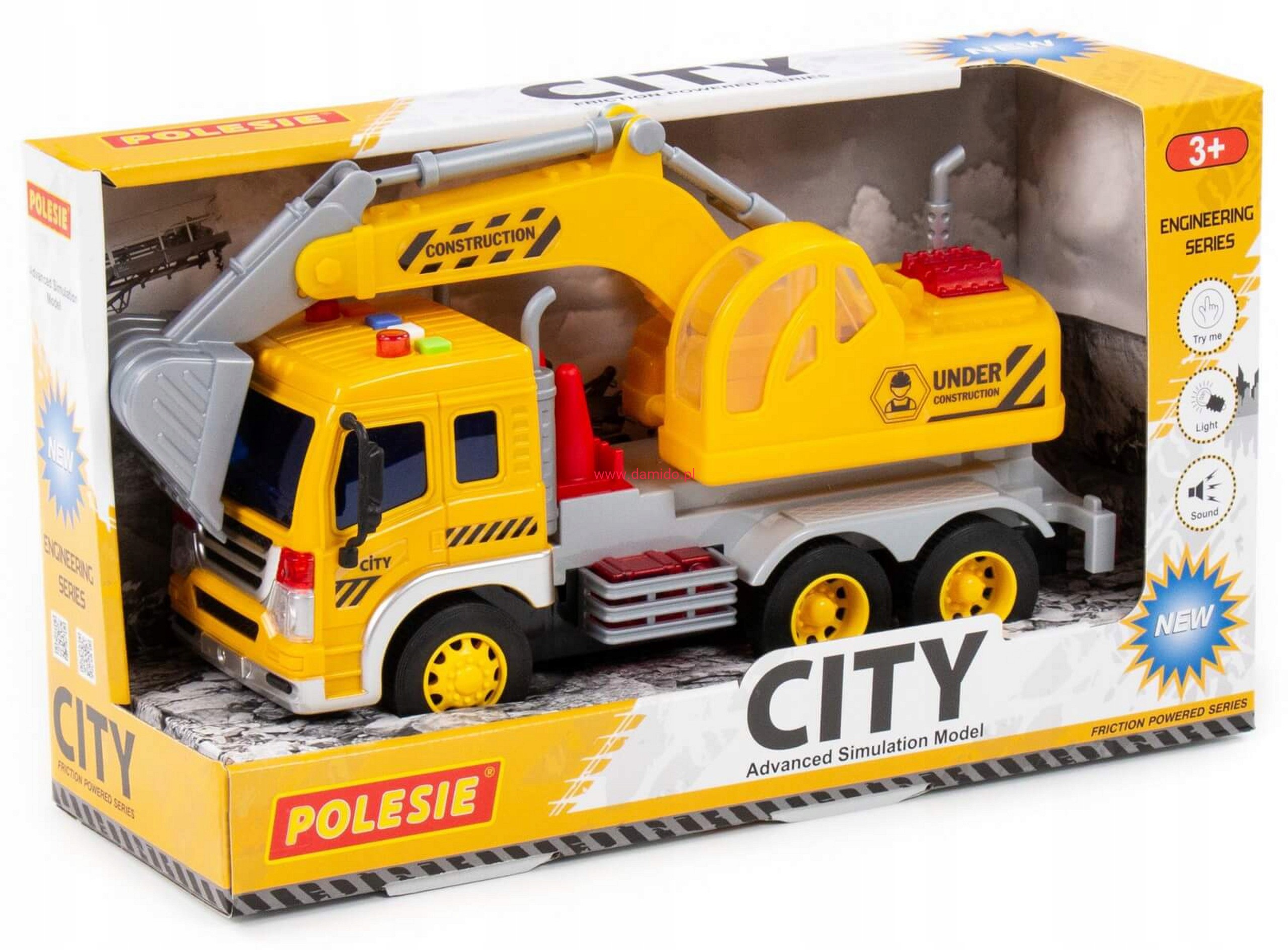 SAMOCHÓD CIĘŻAROWY Z KOPARKĄ INERCYJNY ''CITY'' ŚWIATŁO DŹWIĘK WADER-POLESIE 86365