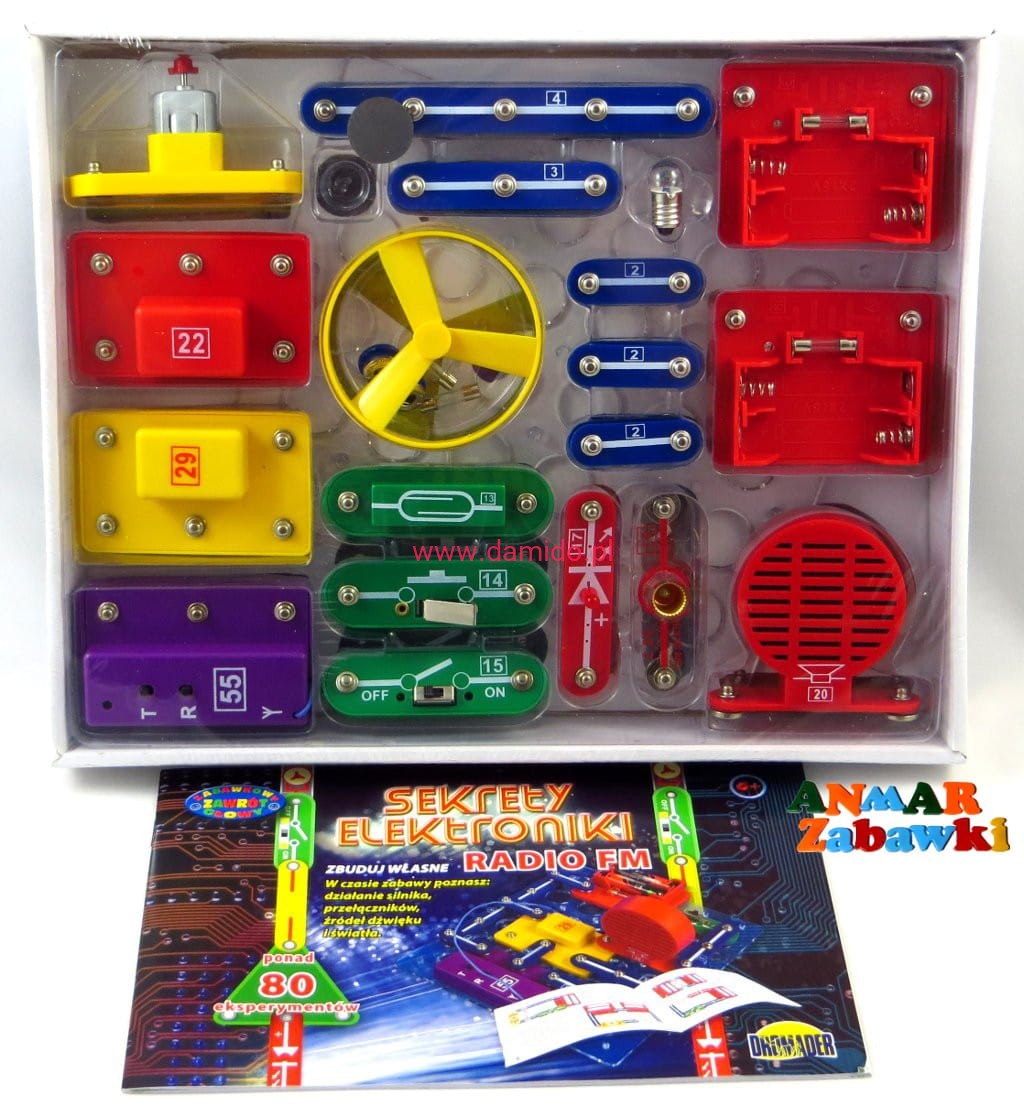 Zestaw Sekrety elektroniki to ponad 80 zaskakujących eksperymentów, które pozwą dzieciom poznać wspaniały świat elektroniki i elektrotechniki. Może być używany zarówno w szkole jak i w domu.