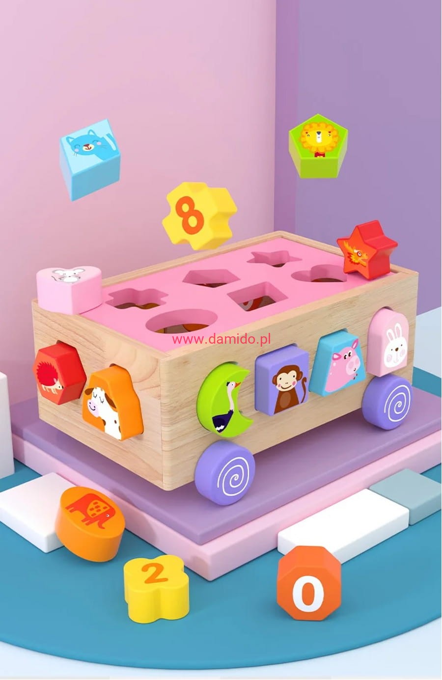 SORTER DREWNIANY EDUKACYJNY 20 EL ZWIERZĄTKA CYFERKI