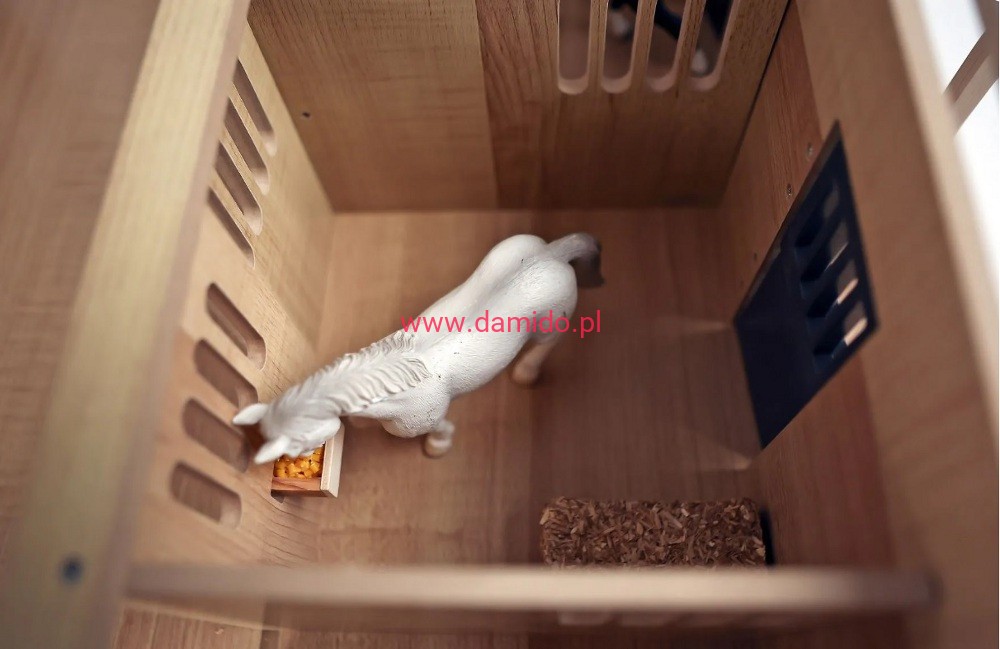 STAJNIA DREWNIANA Z PASTWISKIEM DLA KONI 7 BOKSÓW 75x69x31 CM 1:24