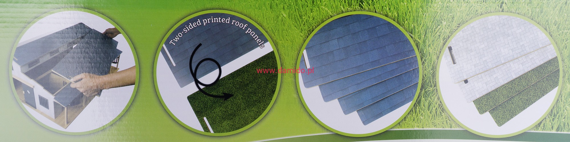 Stajnia wygląda bardzo realistycznie : posiada zdejmowane dwustronne panele dachowe, które można umieścić obok stodoły, aby stworzyć pastwisko oraz imitację dwustronnych betonowych płyt do jazdy zabawkowymi traktorami lub pojazdami.