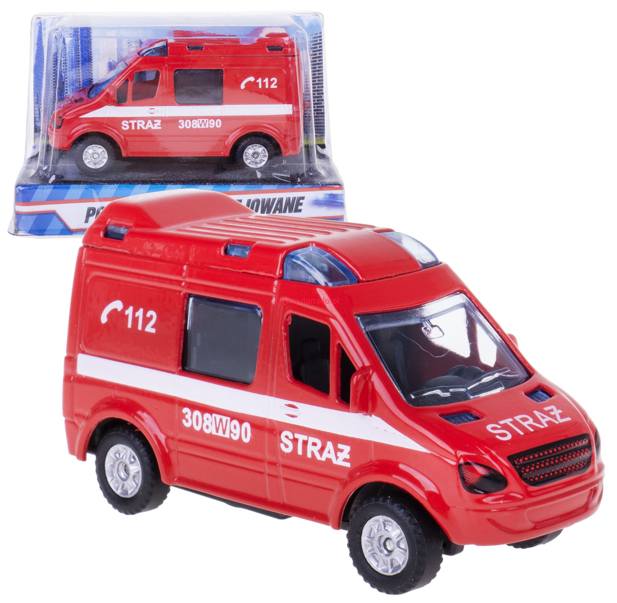 Pojazd uprzywilejowany STRAŻ VAN wykonany z metalu i plastiku z napędem pull-back.