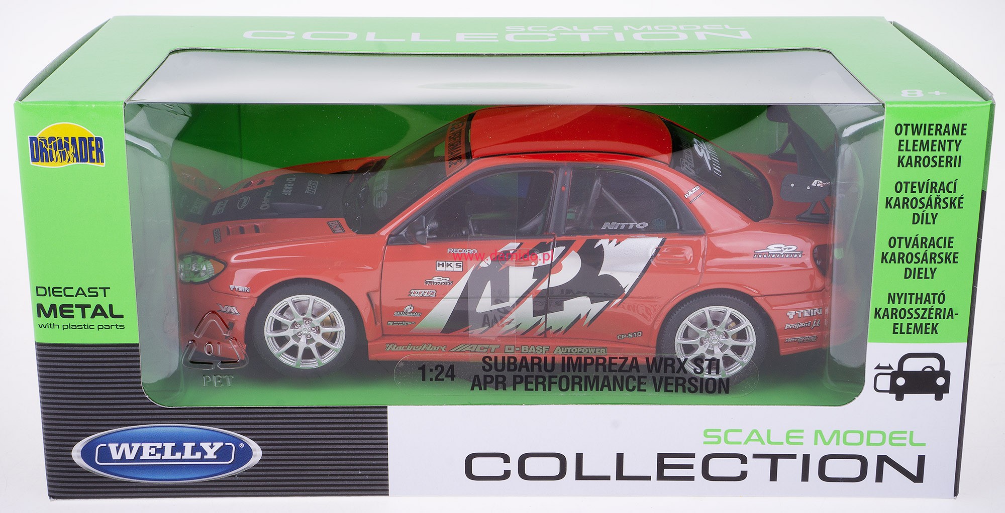 SUBARU IMPREZA WRX STI APR PERFORMANCE VERSION MODEL METALOWY WELLY 1:24 CZERWONY