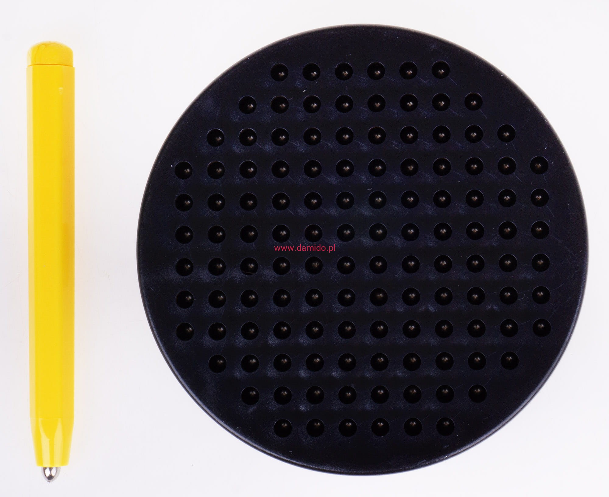 Tablica posiada aż 120 otworów, które wewnątrz mieszczą tyle samo metalowych kulek. Dzięki załączonemu rysikowi z magnesem, który przy dotknięciu rysika do tablicy powoduje, że kulki unoszą się do góry, mogą powstać, dzieła sztuki, różne napisy, samodzielne wzory lub obrazki.