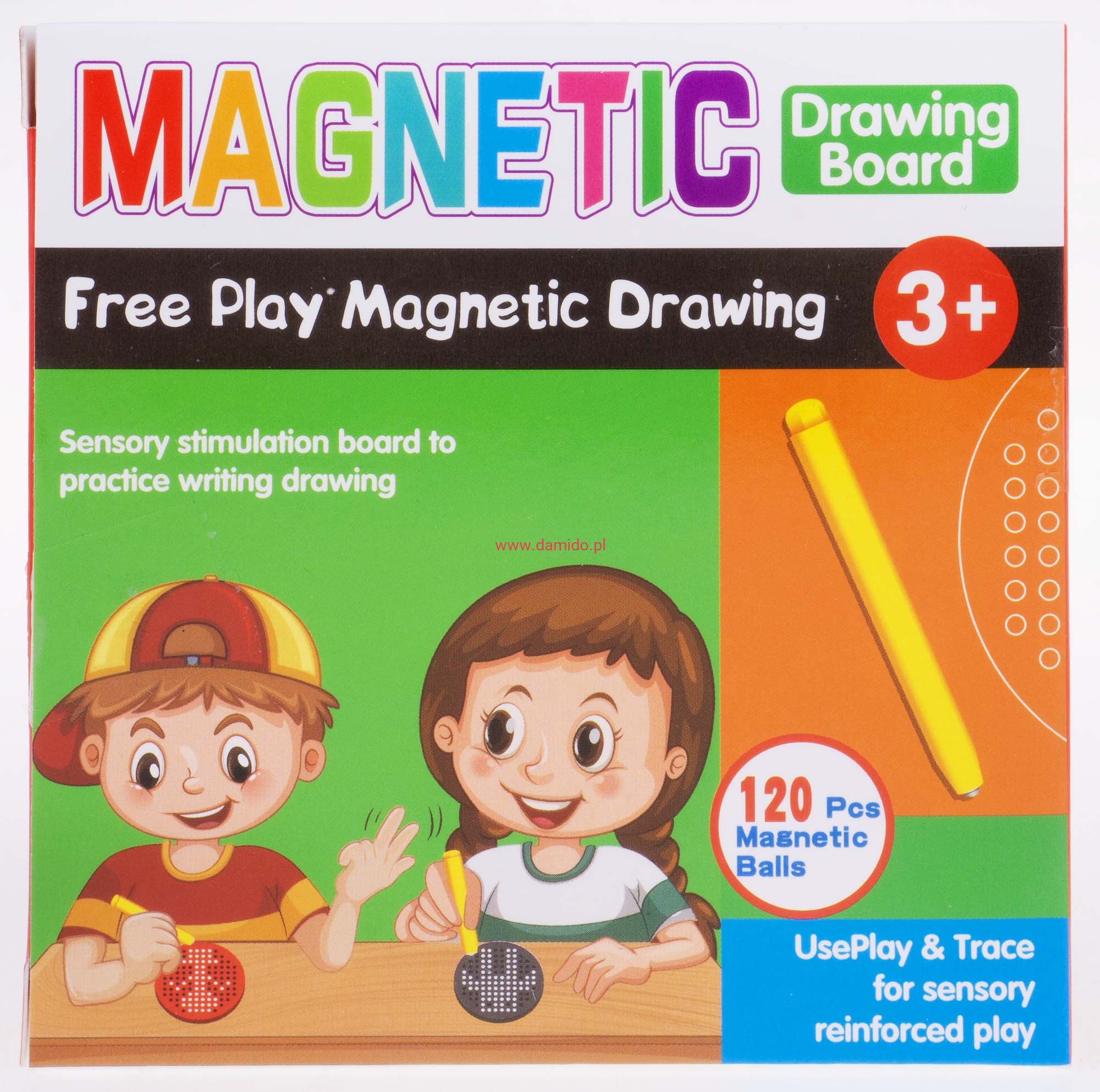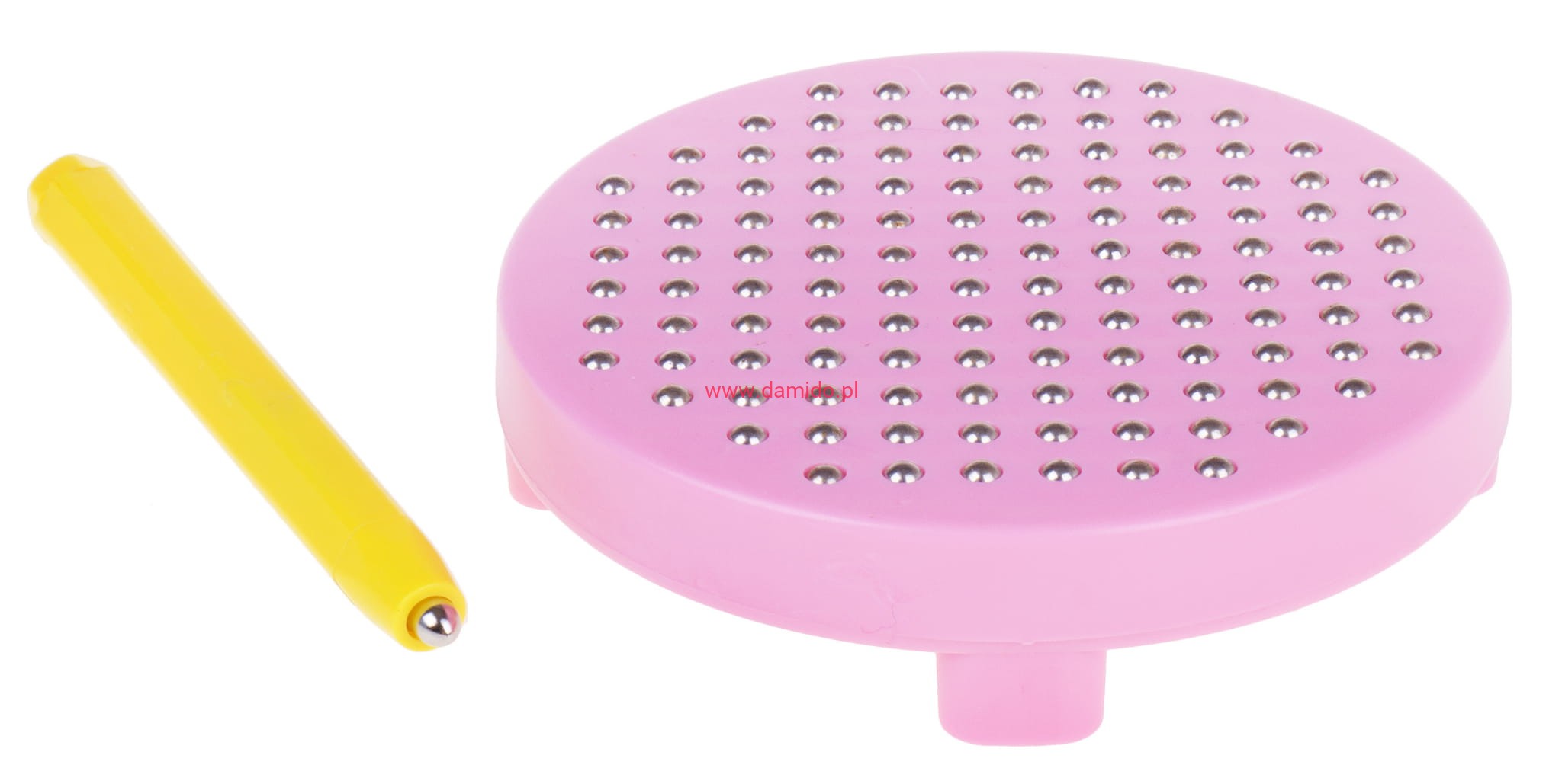 Tablica posiada aż 120 otworów, które wewnątrz mieszczą tyle samo metalowych kulek. Dzięki załączonemu rysikowi z magnesem, który przy dotknięciu rysika do tablicy powoduje, że kulki unoszą się do góry, mogą powstać, dzieła sztuki, różne napisy, samodzielne wzory lub obrazki.