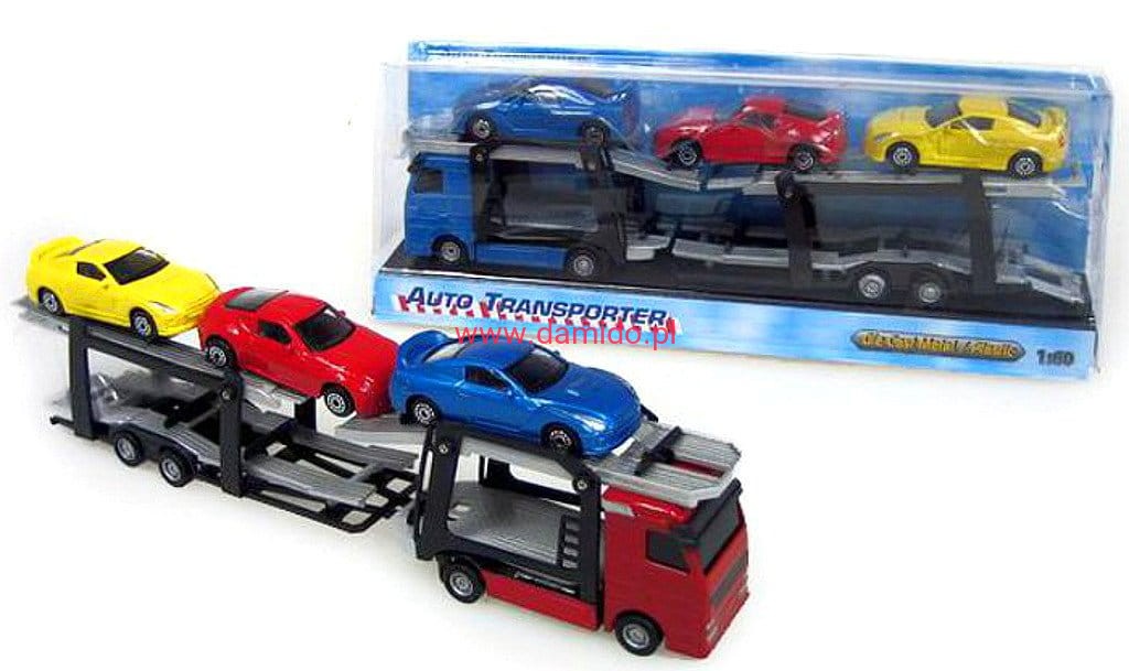 AUTO TRANSPORTER 1:60 + 3 AUTKA NA LAWECIE METALOWE 541756