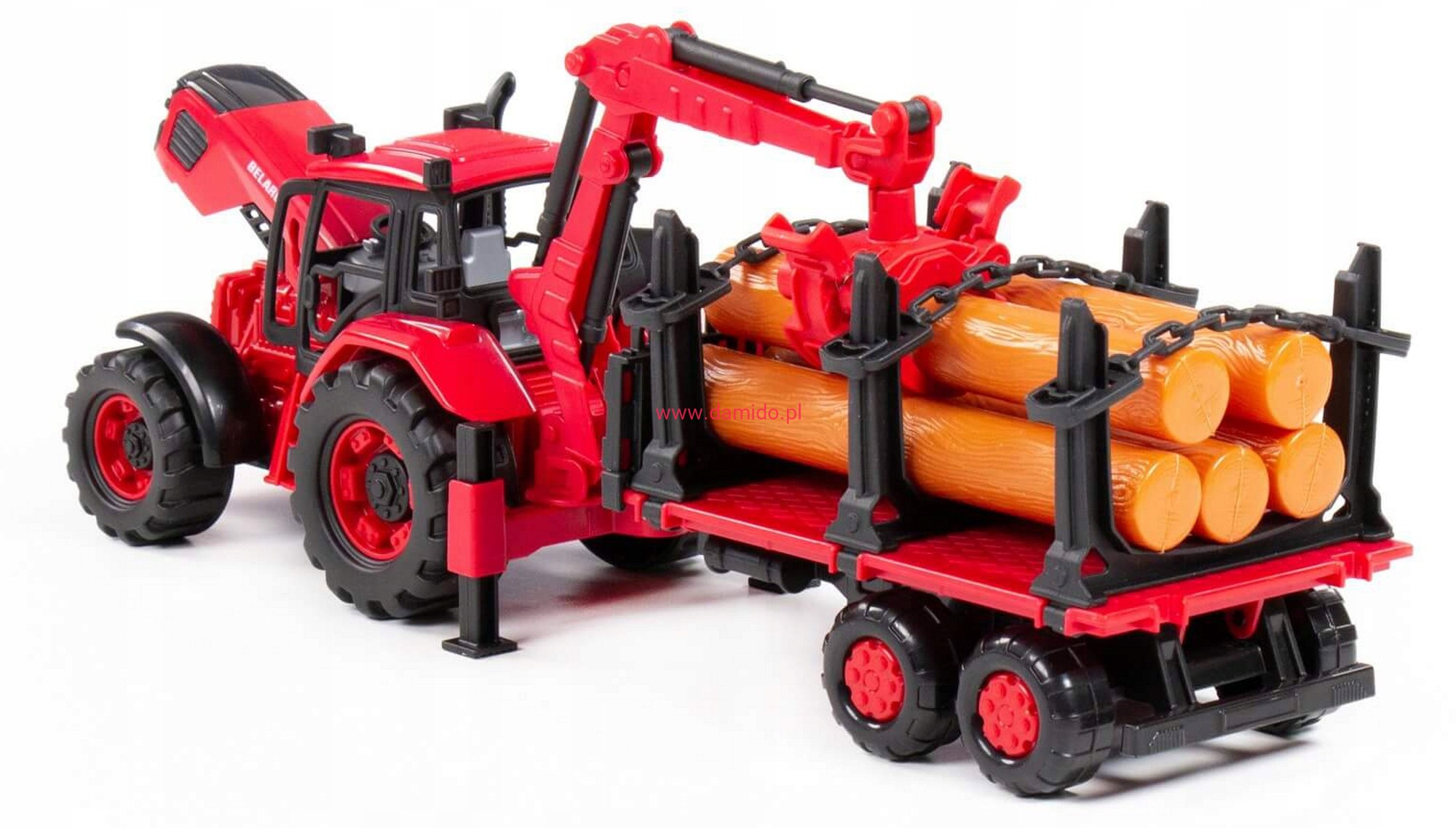 TRAKTOR BELARUS Z PODNOŚNIKIEM I PRZYCZEPĄ DO PRZEWOZU DREWNA WADER-POLESIE
