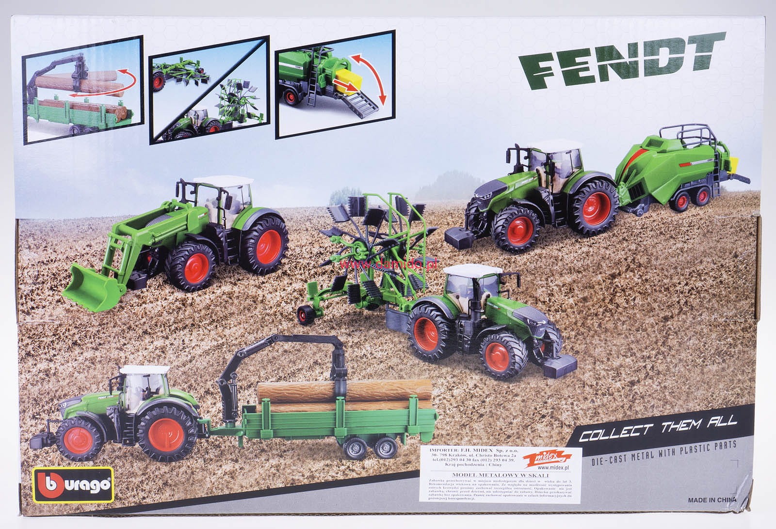 TRAKTOR FENDT 1050 VARIO + 3 PRZYCZEPY METAL PLASTIK BBURAGO 31668