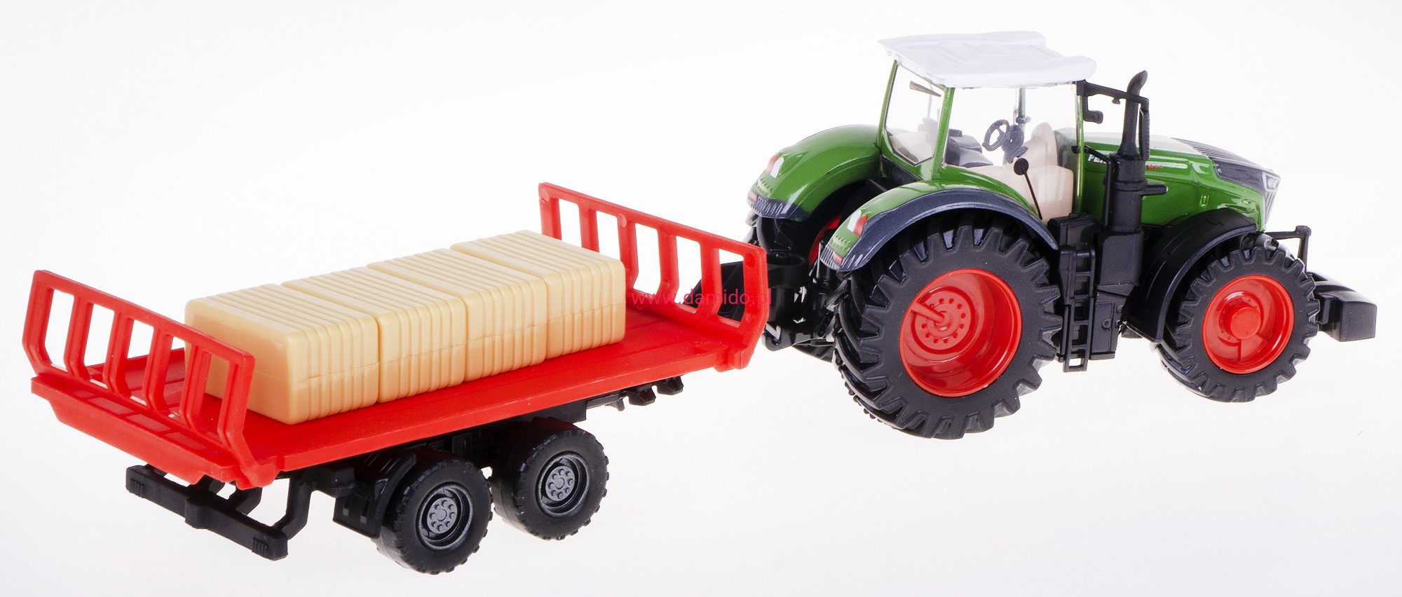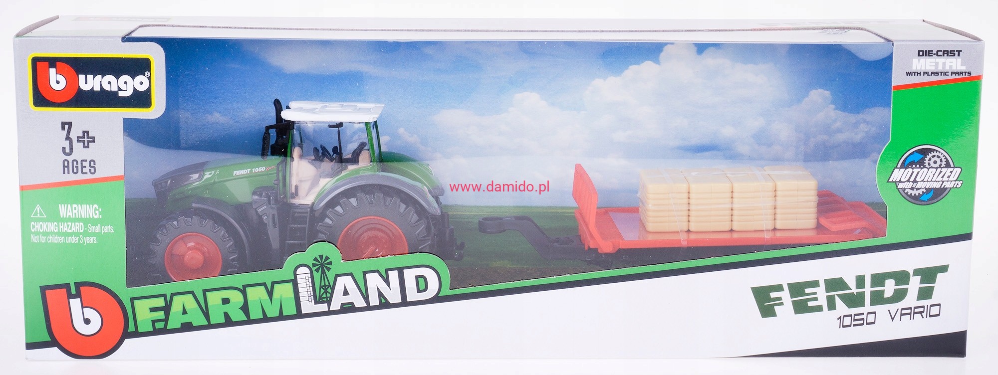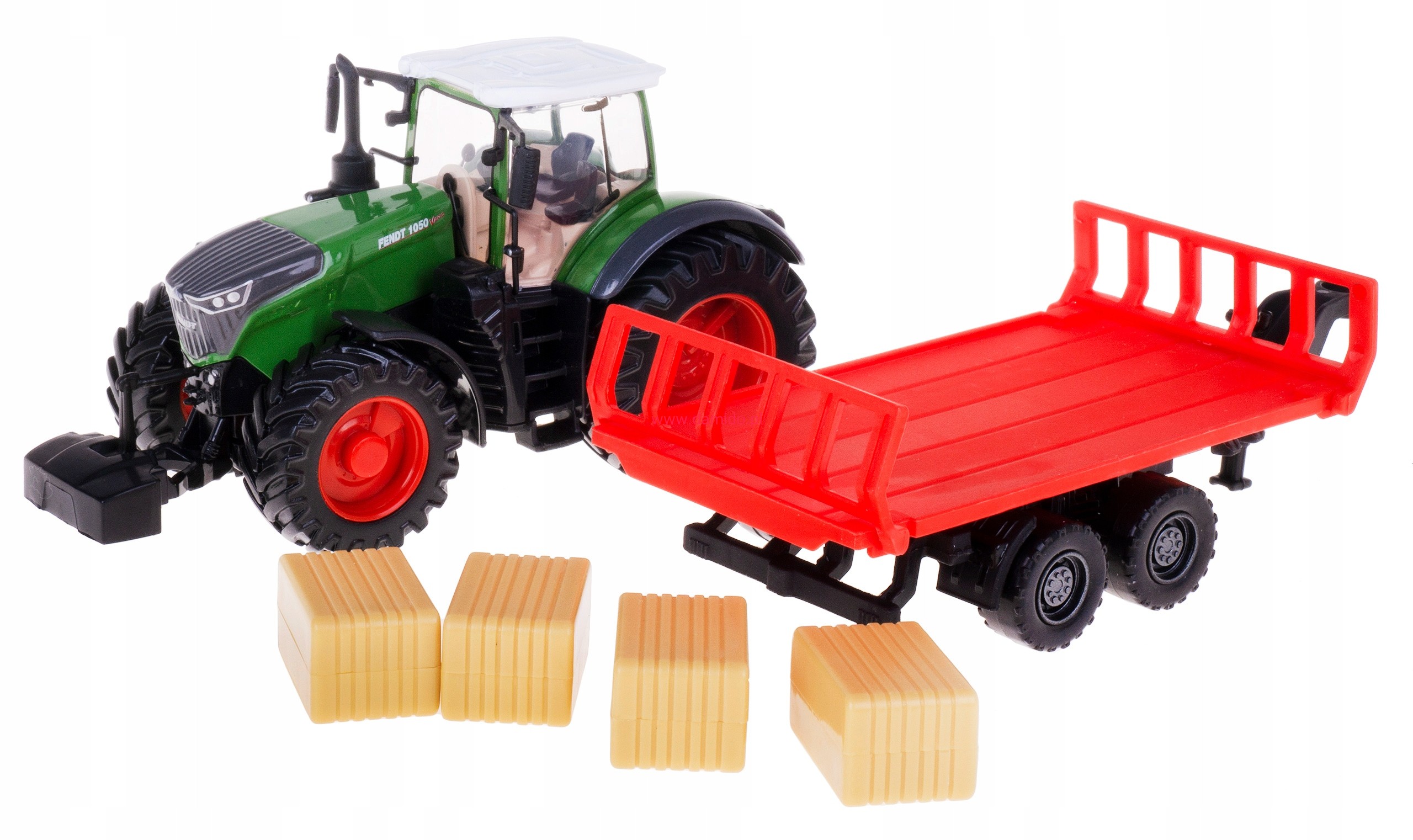 Traktor z serii FEND 1050 VARIO z przyczepką i 4 kostkami słomy firmy Bburago został wykonany z najwyższej jakości tworzywa sztucznego i metalu z bardzo ogromną dbałością o szczegóły i detale, aby wiernie odwzorowując prawdziwą maszynę rolniczą, zapewniając frajdę podczas wspaniałej zabawy.