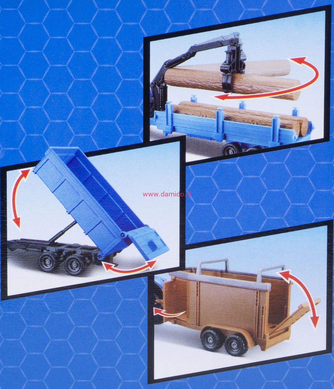 do przewozu zwierząt oraz przyczepa z chwytakiem i balami drewna zapewniając dodatkową frajdę podczas zabawy.