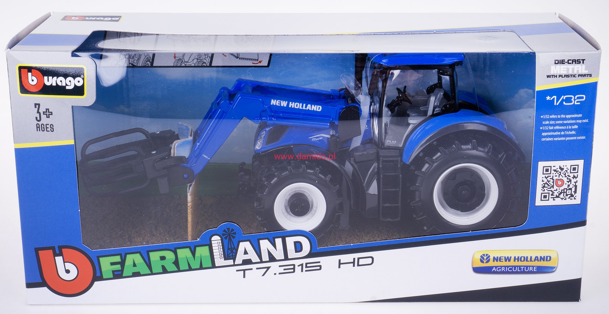 TRAKTOR NEW HOLLAND T7.315 HD 1:32 Z CHWYTAKIEM BALOTÓW BBURAGO